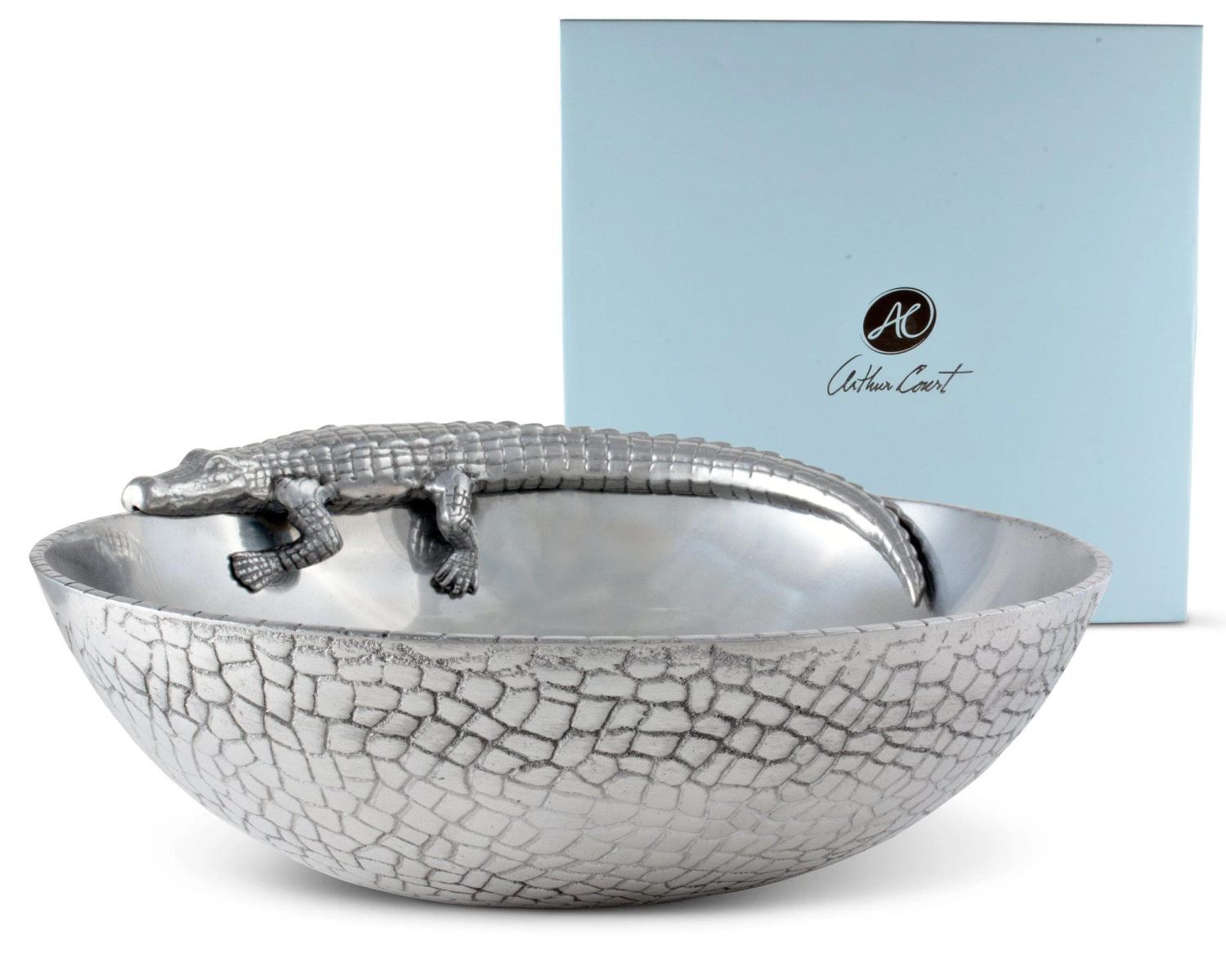 Make your serveware shine again with the 12″ Alligator Figural Bowl from Arthur Court.