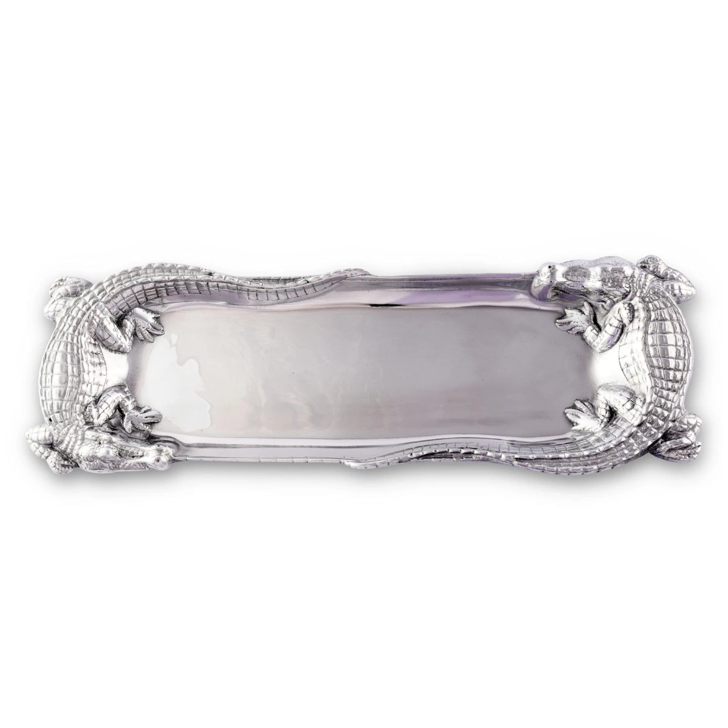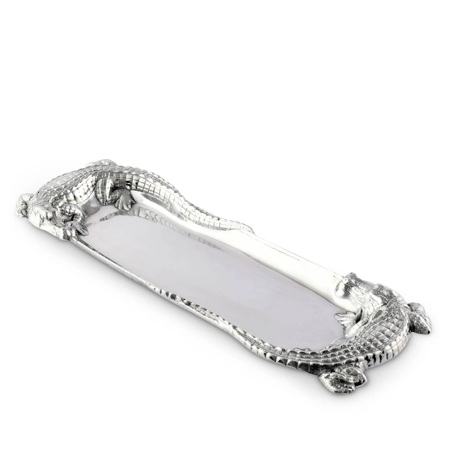 Circle your favorite dish with Arthur Court’s beautifully embellished Alligator Figural Oblong Tray.