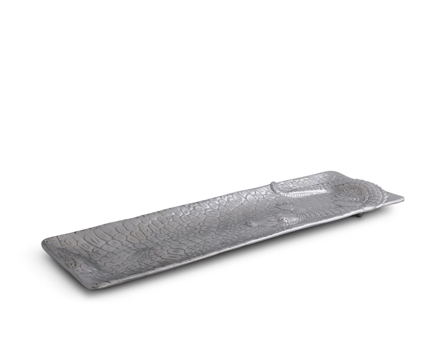 This stealthy alligator lends the pattern of its distinctive skin to the richly textured line of Arthur Court’s Alligator Oblong Tray.