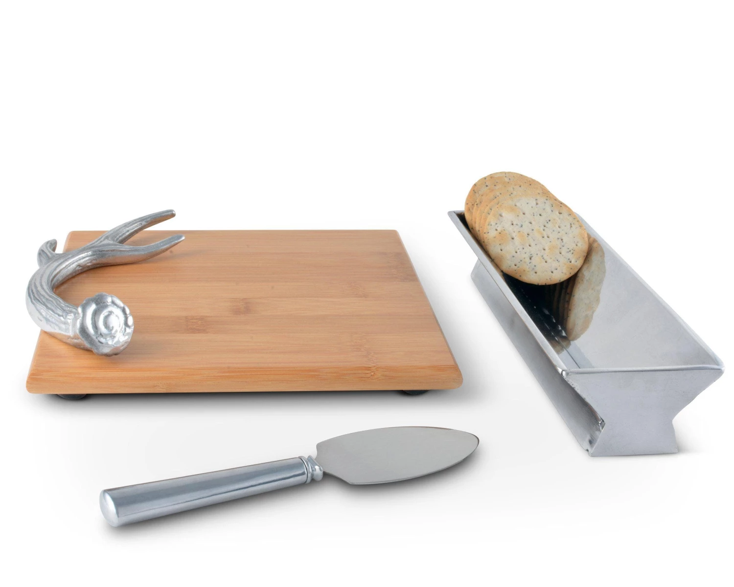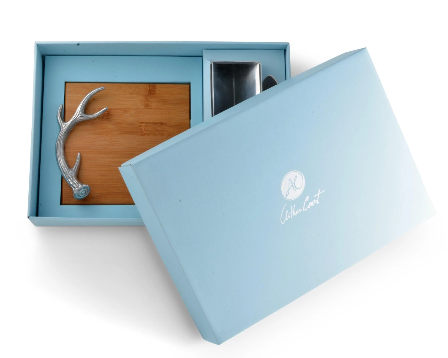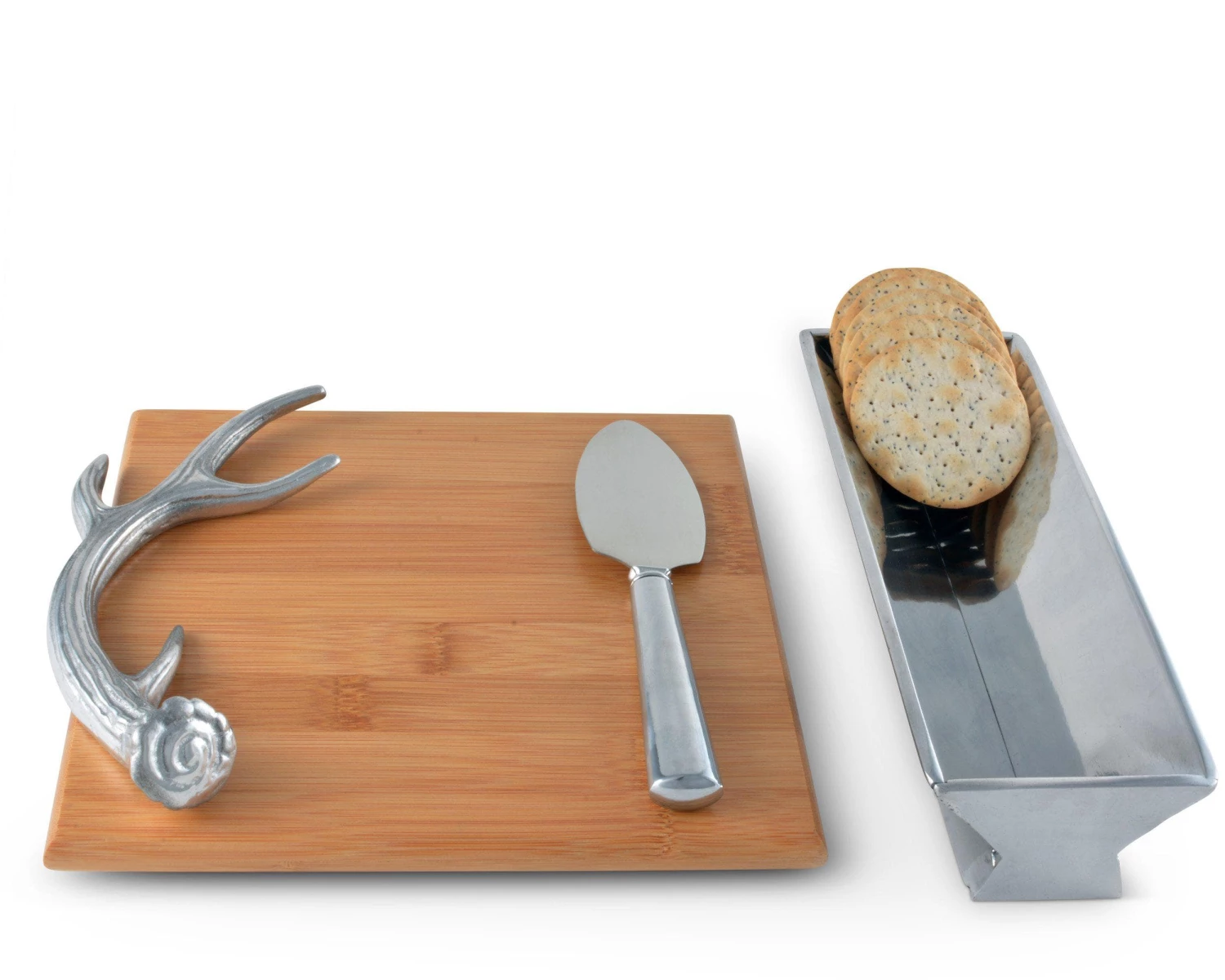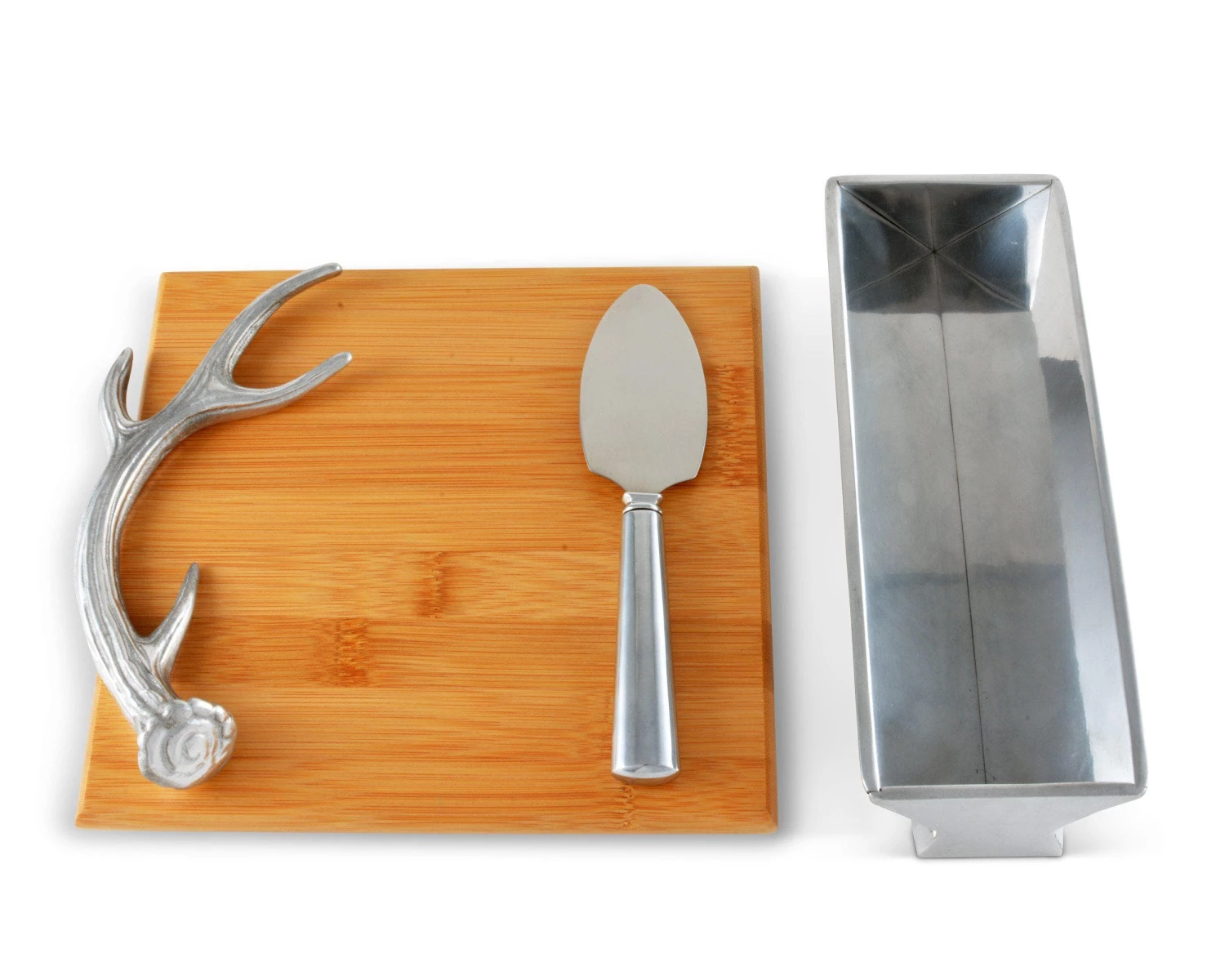 Dazzle your guests with the alluring fixtures in Arthur Court’s Antler Bamboo Cheese Set.