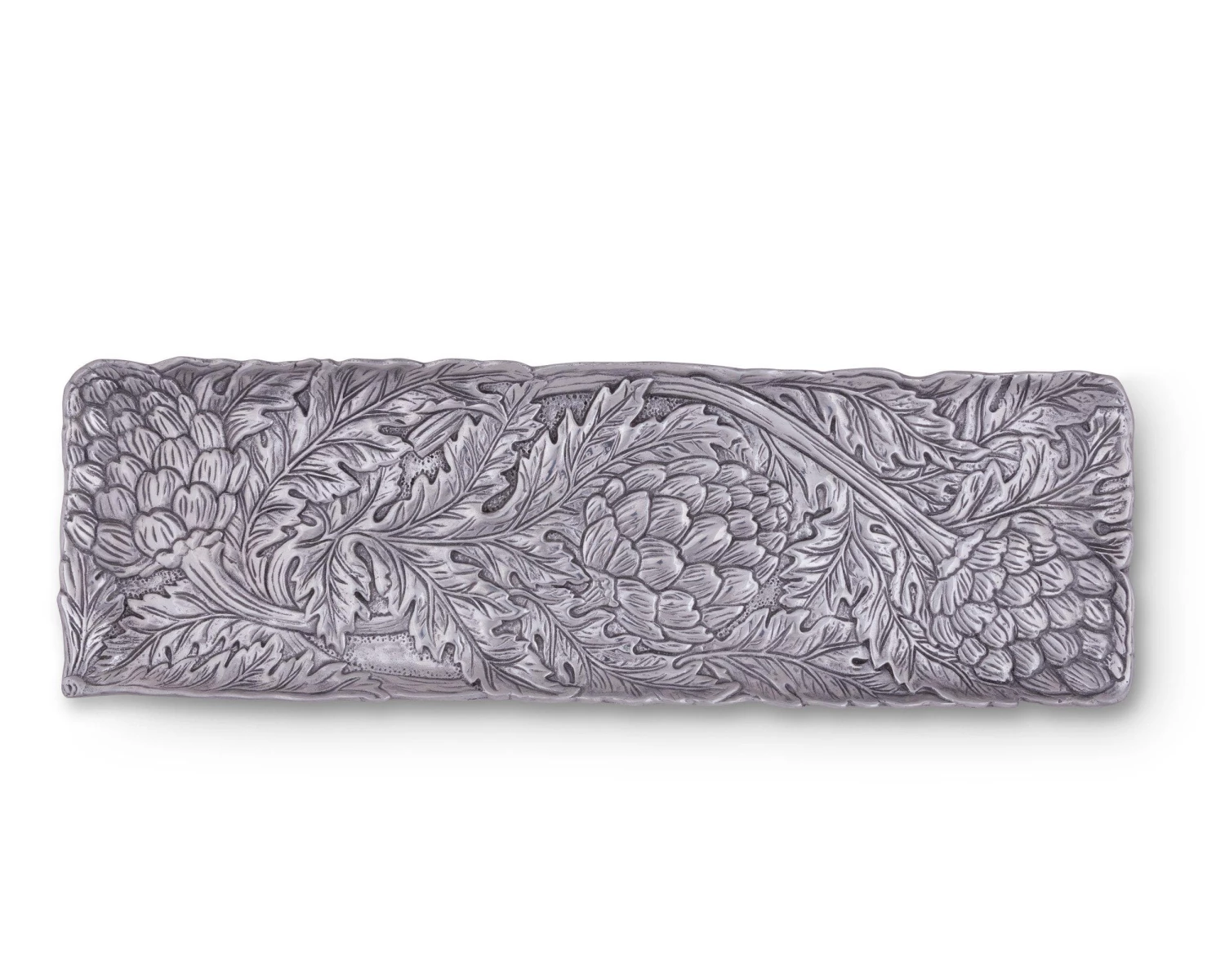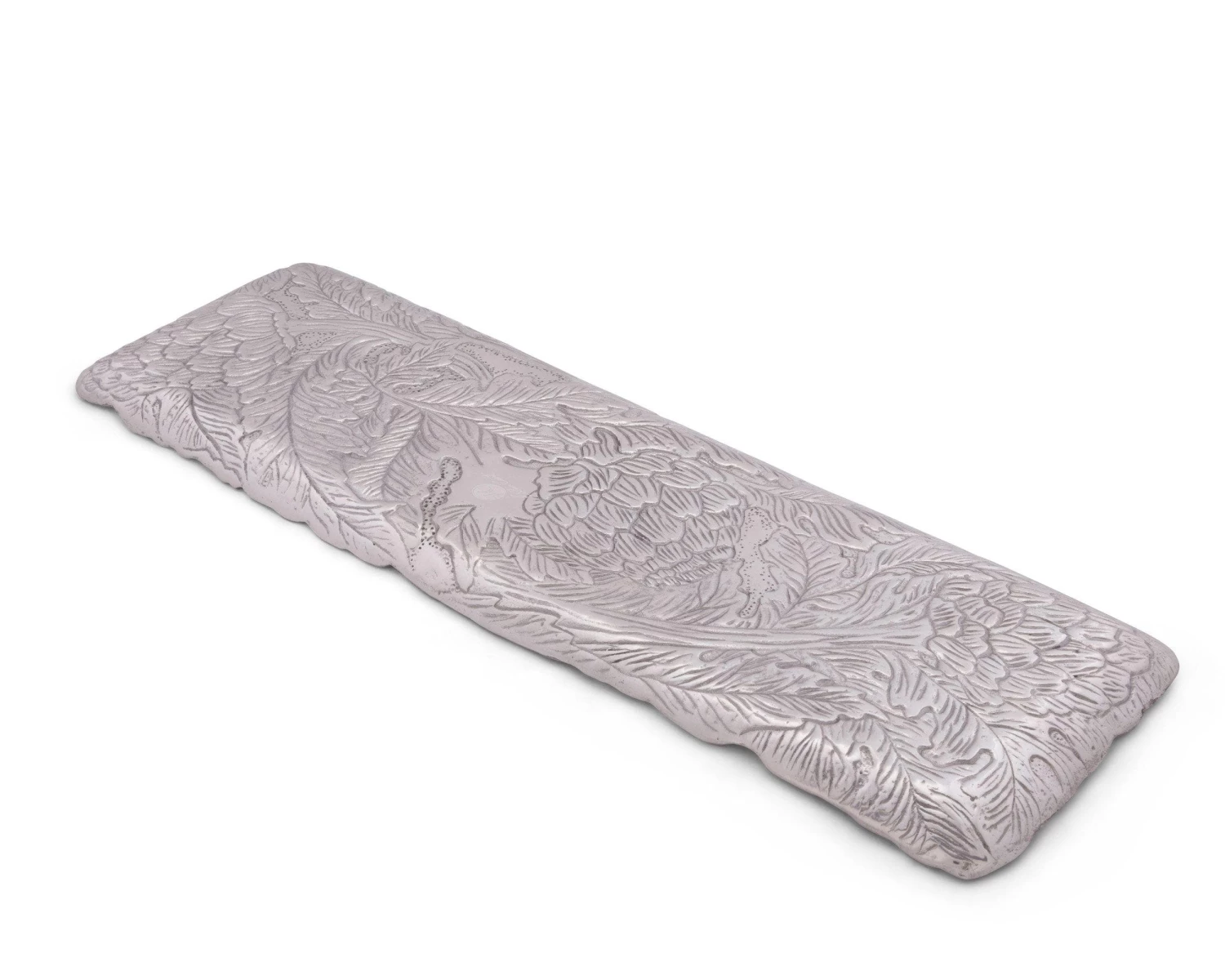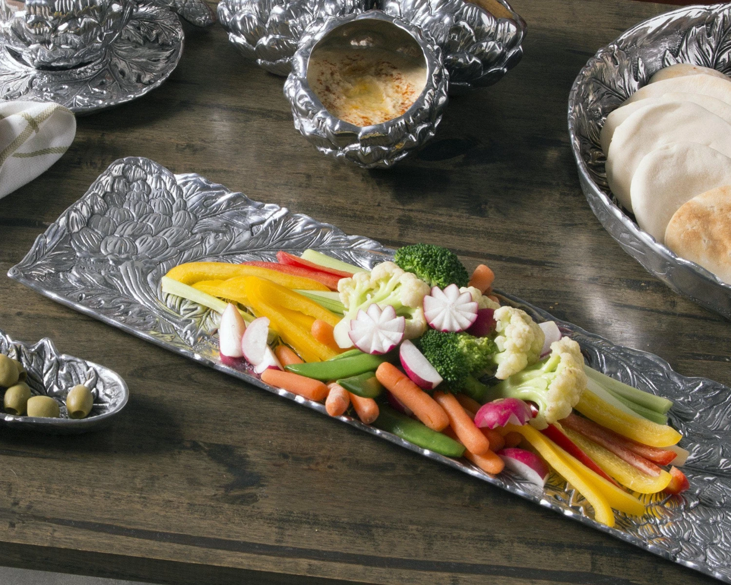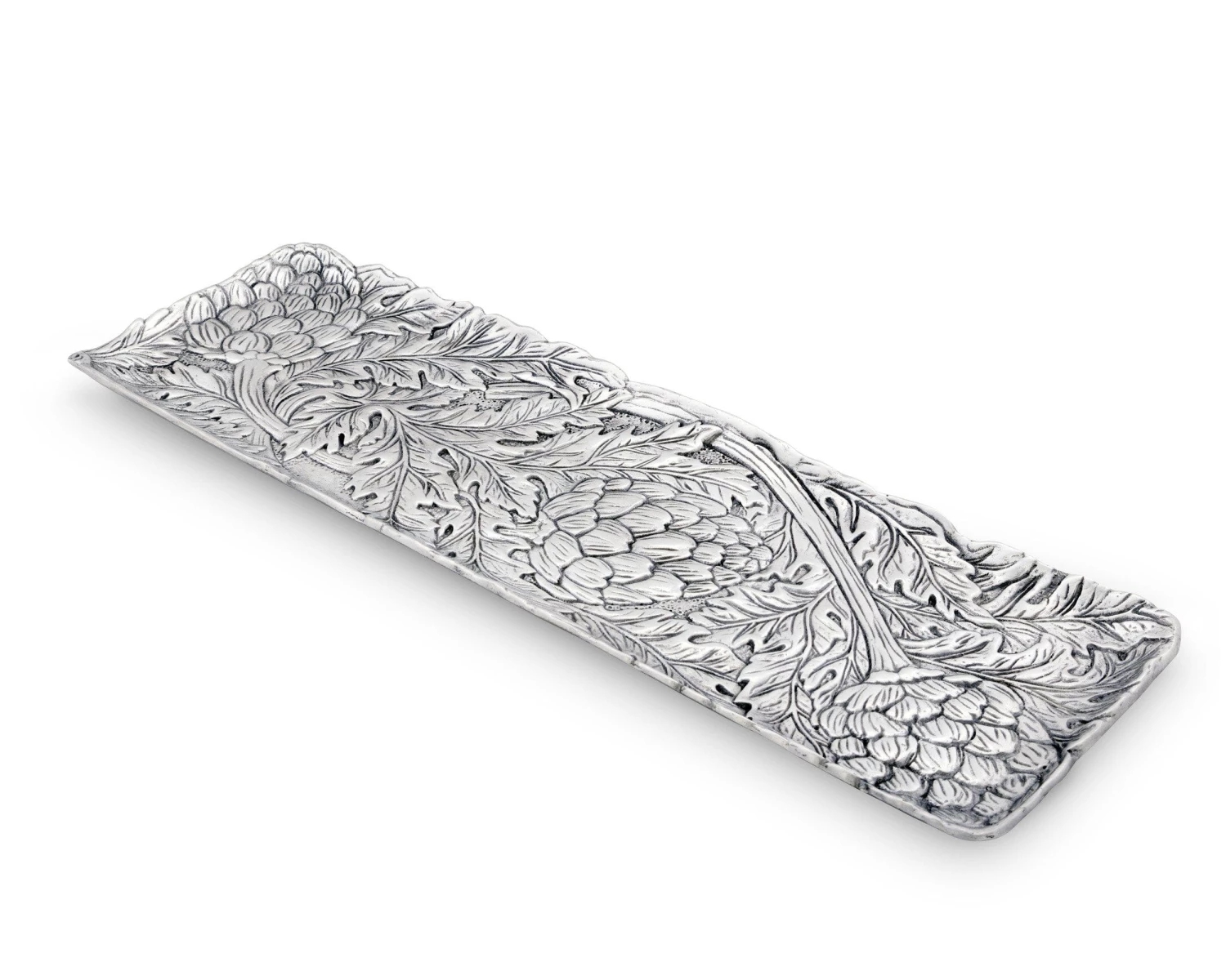 The beautiful bas-relief detailing on Arthur Court’s unique Artichoke Oblong Tray depicts artichokes and feathery leaves not only on the top of the tray but on the bottom as well. Hand-crafted in Arthur Court’s luxury proprietary aluminum alloy, it’s a perfect server or beautiful wall décor.