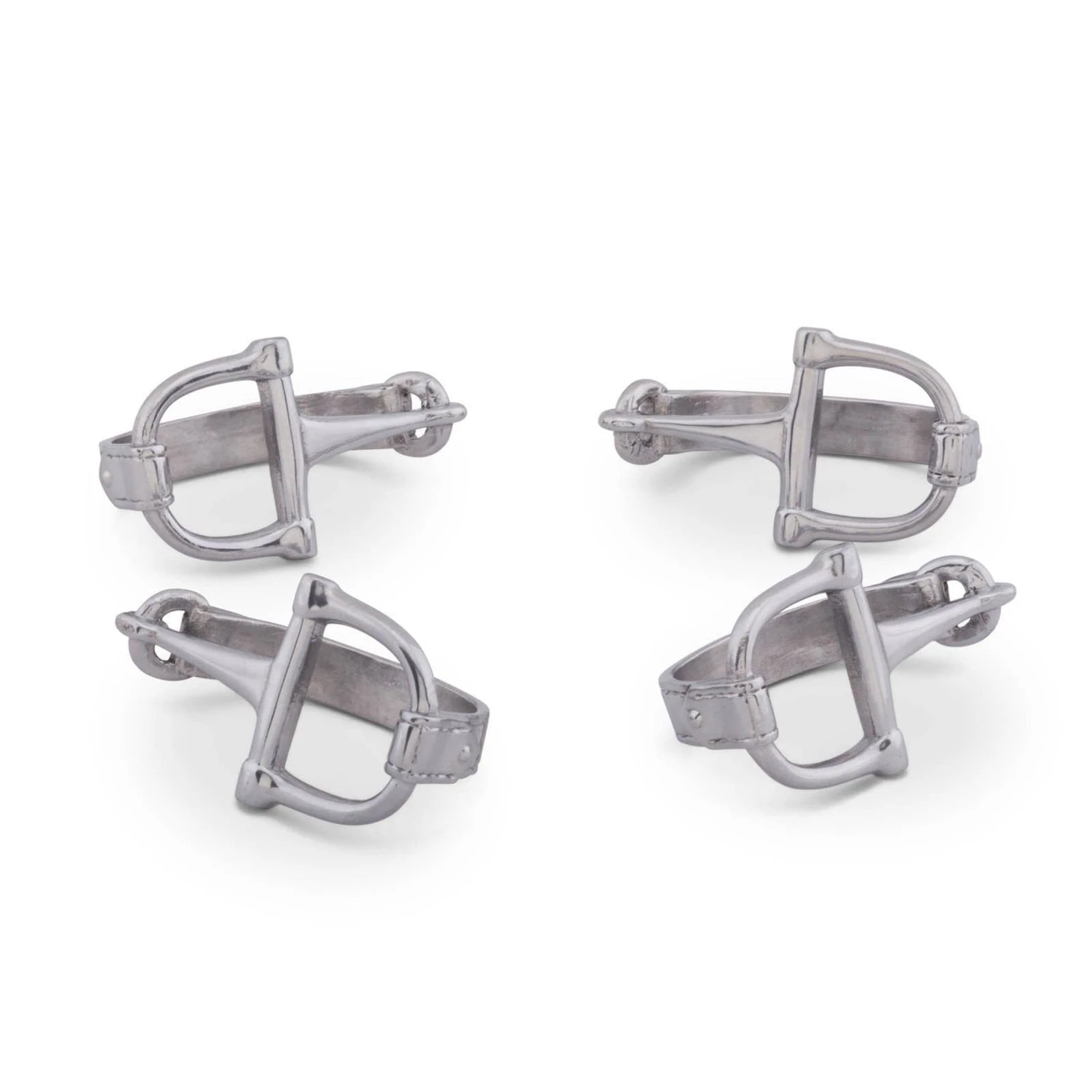 Unequivocally for the Equestrian Set, these Arthur Court Equestrian Napkin Rings are cast in the shape of a D Ring Snaffle Bit. The set of 4 napkin rings will rein in your napkins so they are a study in orderly beauty on your table.