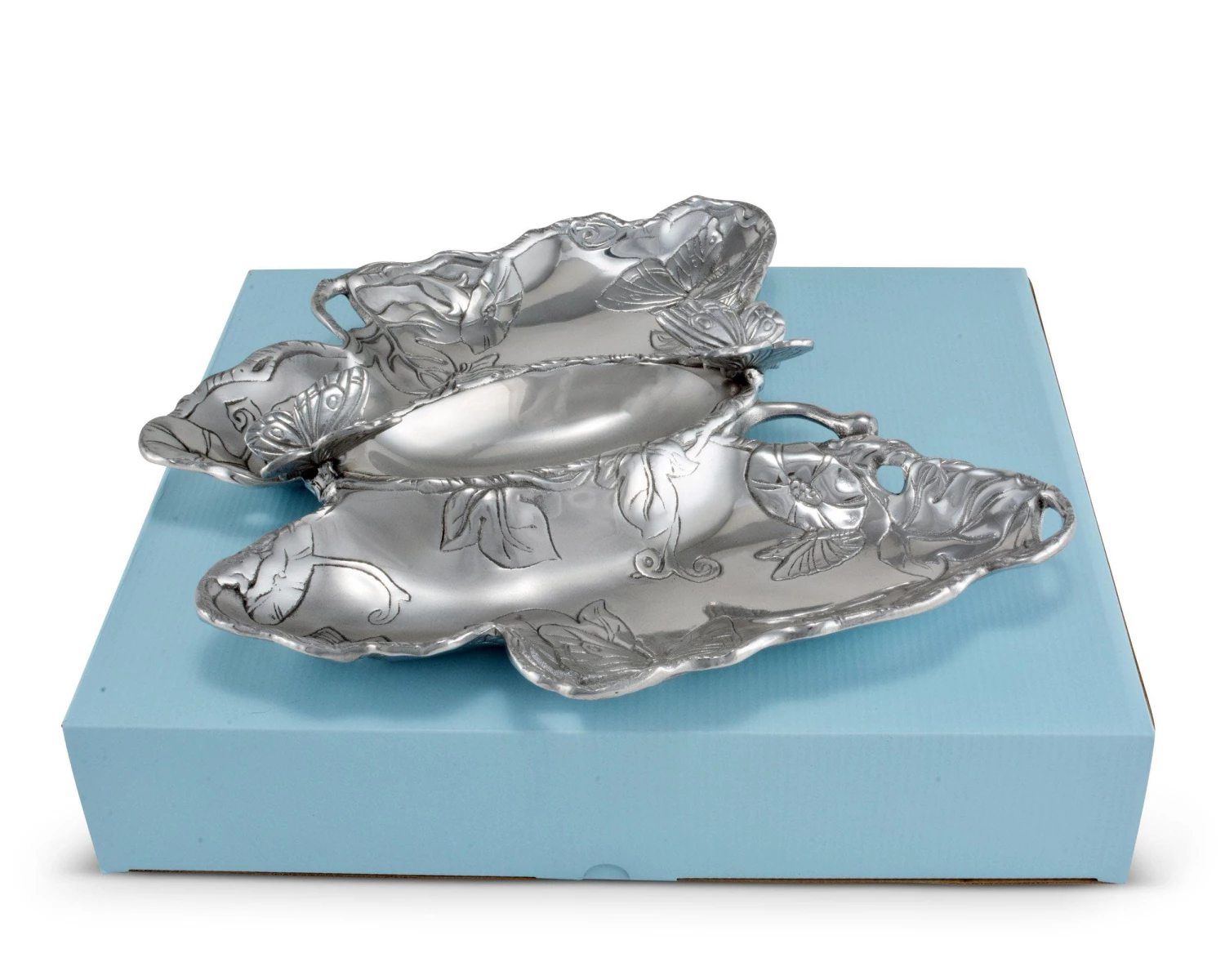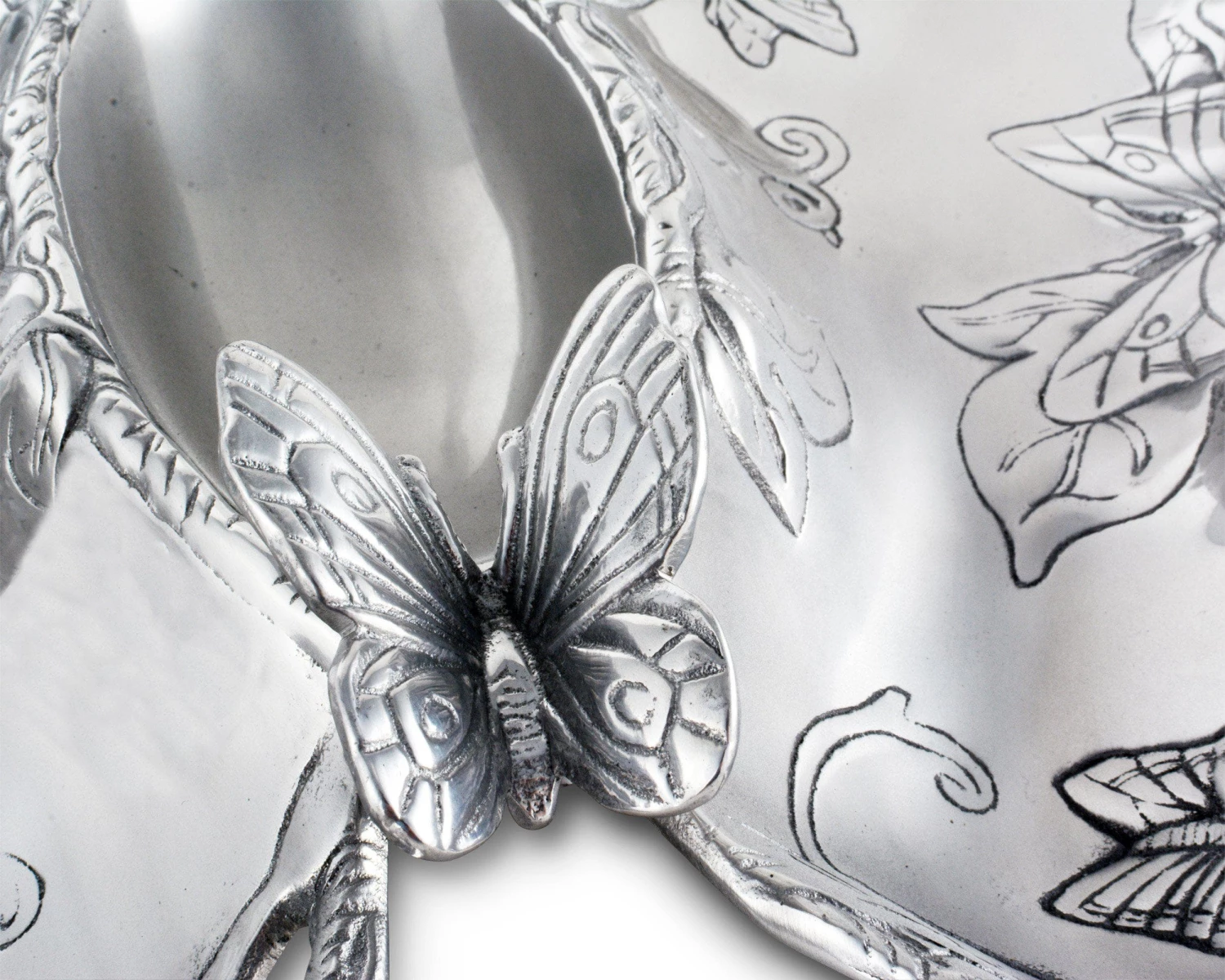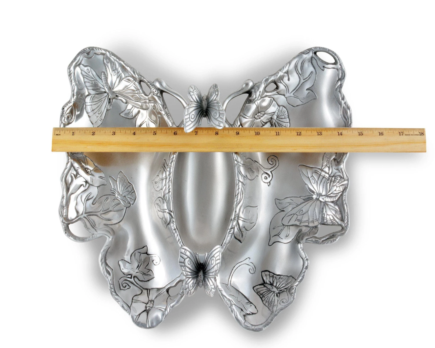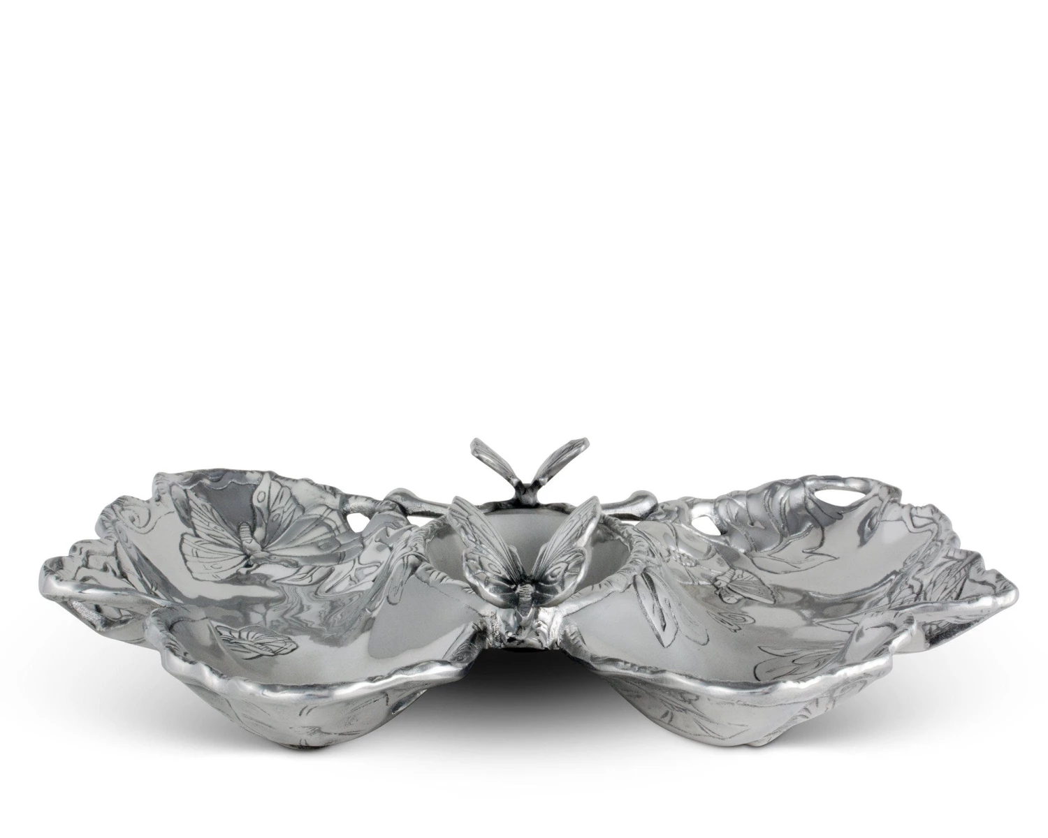 Great for entertaining, this Arthur Court Butterfly Chip and Dip Tray is both beautiful and functional, featuring an elegant butterfly silhouette with a built-in well in the center to house your favorite dip.