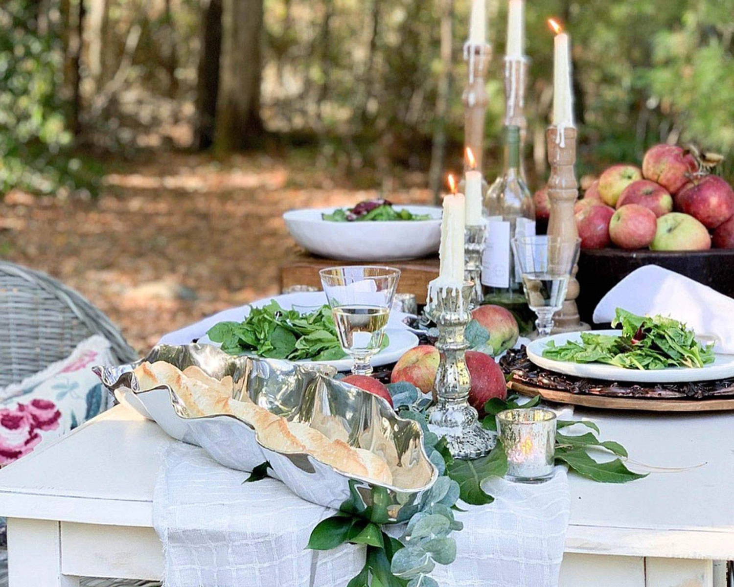 Arthur Court’s wavy edged Carmel Collection is California inspired by the fairy tale village of Carmel-by-the Sea. Nestled into the rolling hills where California’s central coast meets the gentle waves of the Pacific, the magical hamlet is filled with storybook cottages wearing roofs that swoop and roll, echoing the undulating waves of the sea.