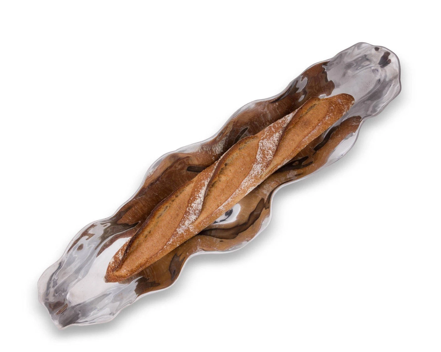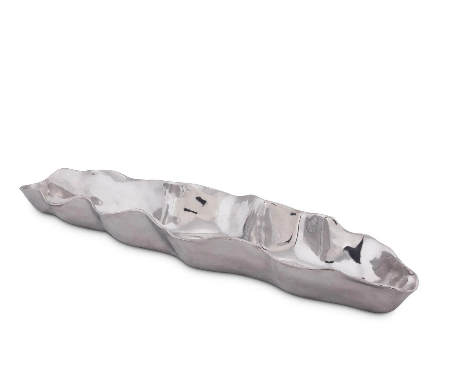 Add a touch of modern romantic fantasy to your home with our functional modern art-inspired Arthur Court platter. Constructed of shining aluminum with a modern wave design edge. Serve your favorites on it or display as the work of art it is anywhere in your home.
