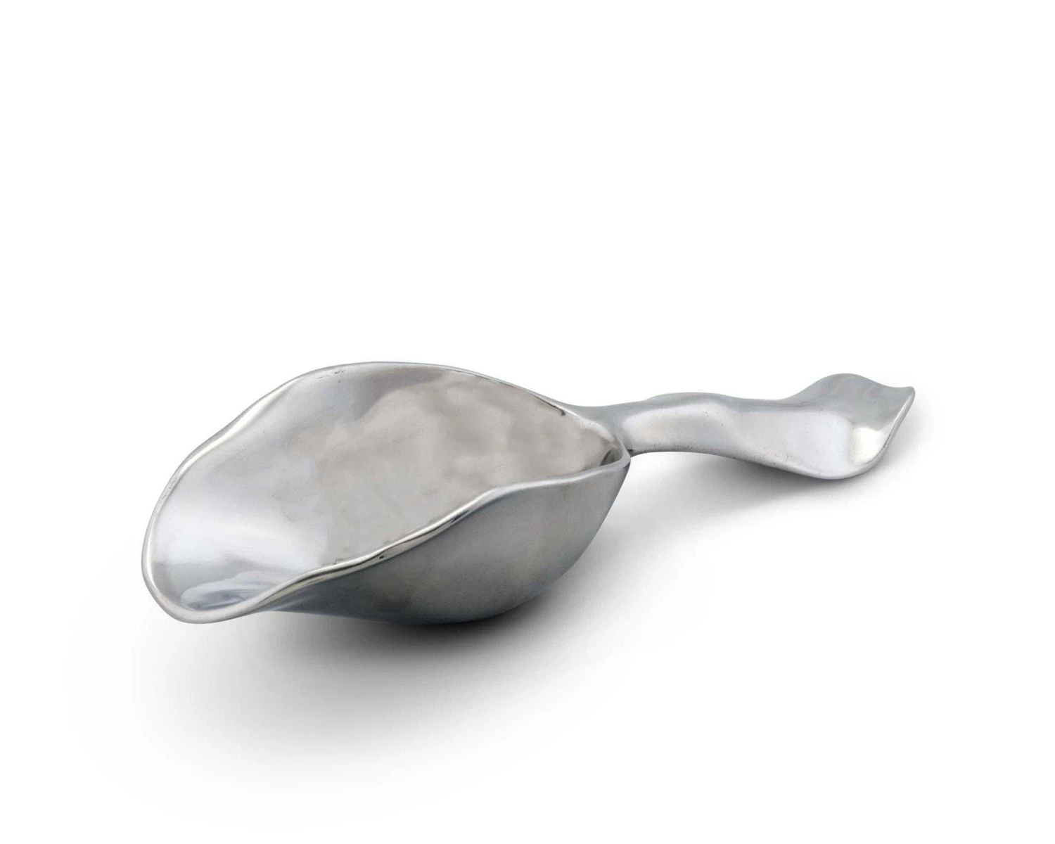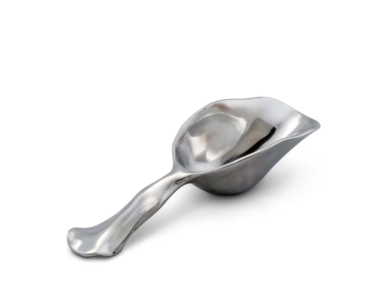 Use it to scoop ice, flour, sugar, cornflakes or candy. The length of the handle ensures a firm grip and the modern, wavy edged design of the lustrous aluminum, turns this scoop into a beautiful and eye catching home decor accent.