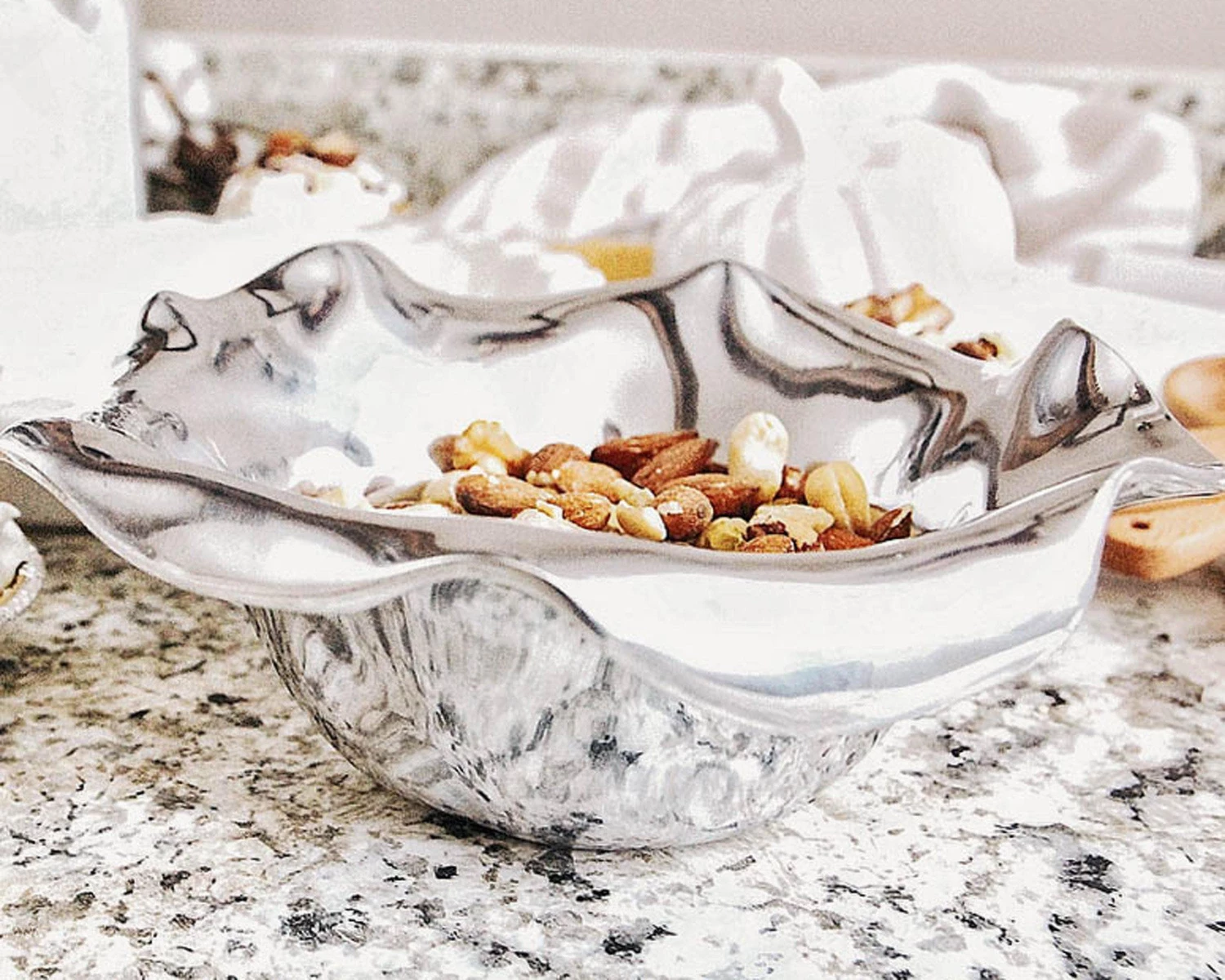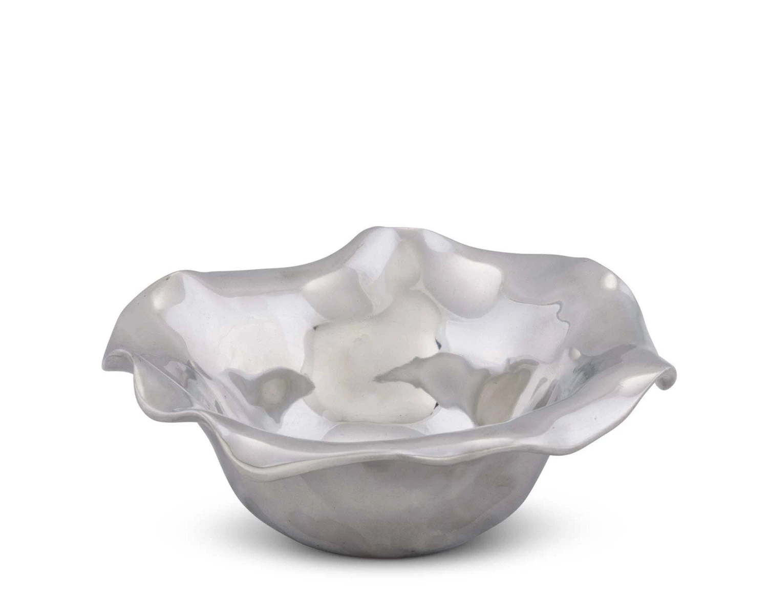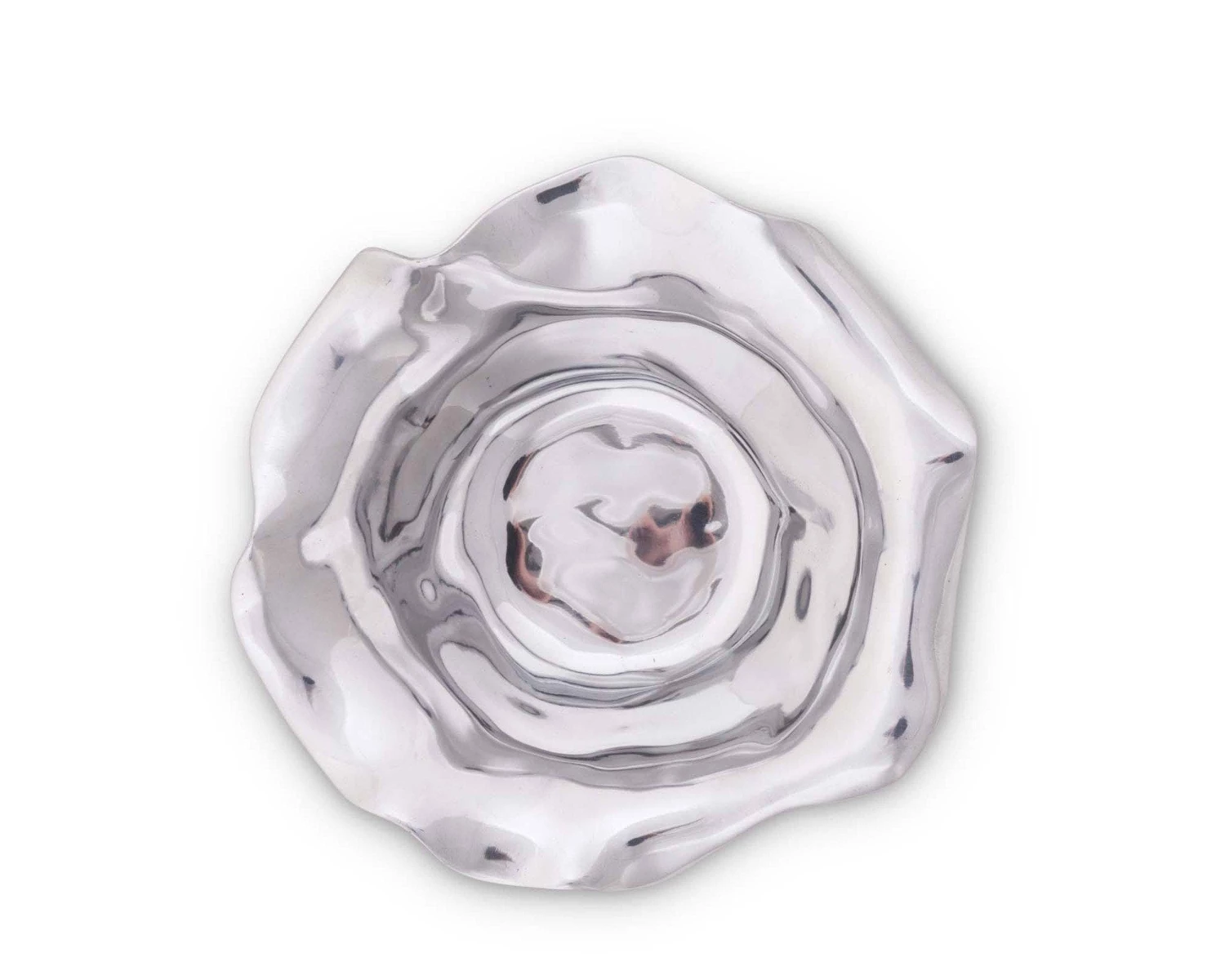 Only Arthur Court designers would imagine modern serve-ware inspired by a fairy tale village. High shine, wavy edge Carmel Collection dip bowl holds 2 cups of anything you want to serve in it. An eye-catching, modern, romantic table top bowl for any room in the house.