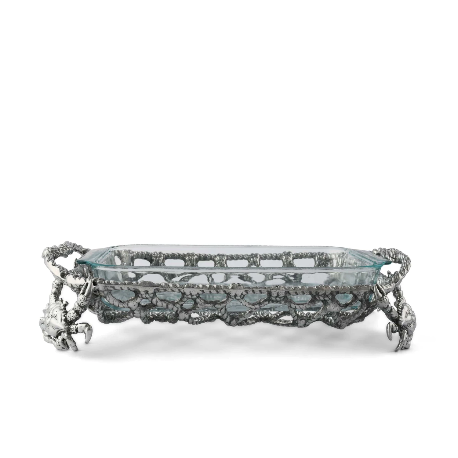 Our intricately detailed crab and net casserole holder is made from lightweight, tarnish-proof raw aluminum for a durable and low-maintenance piece of tableware. The Pyrex dish is included, making this a wonderful gift for lovers of the coastal lifestyle.