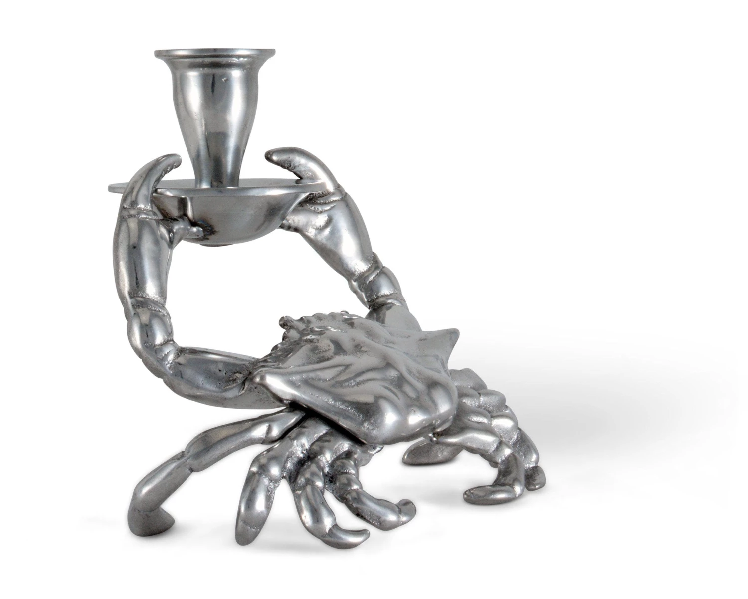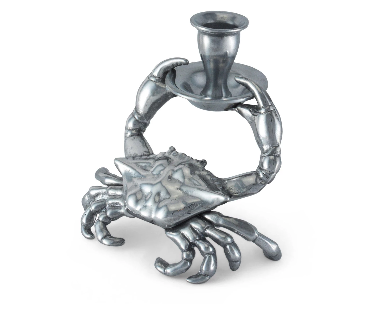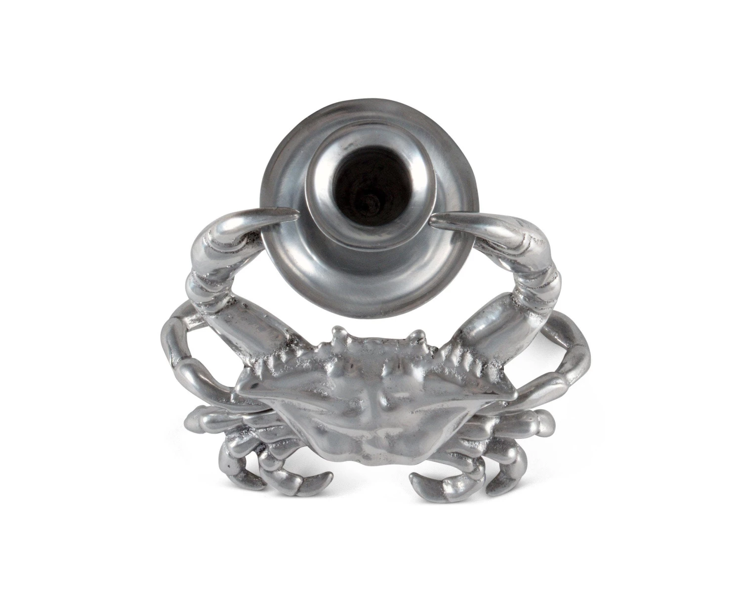 Create an ocean of delight in your home with Arthur Court’s Crab Candle Holder. This taper candle holder features extraordinary detail in our exclusive aluminum alloy. The crab holds a rimmed candle cup securely between its detailed pincered foreclaws.
