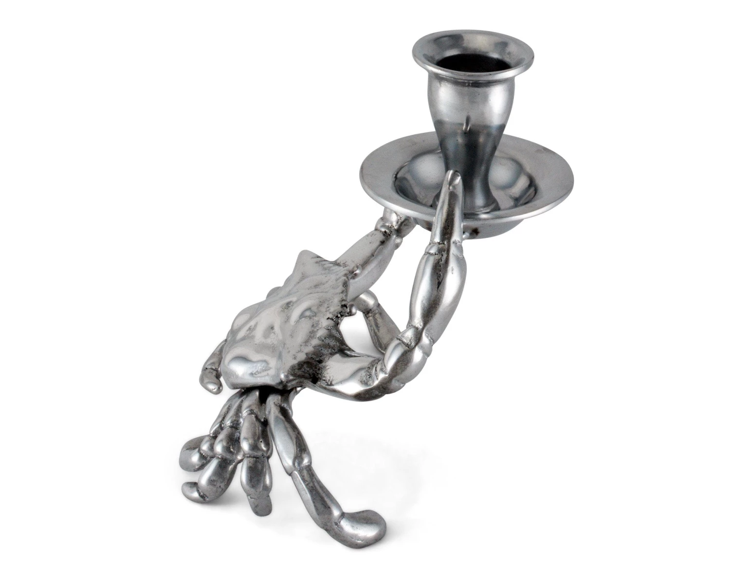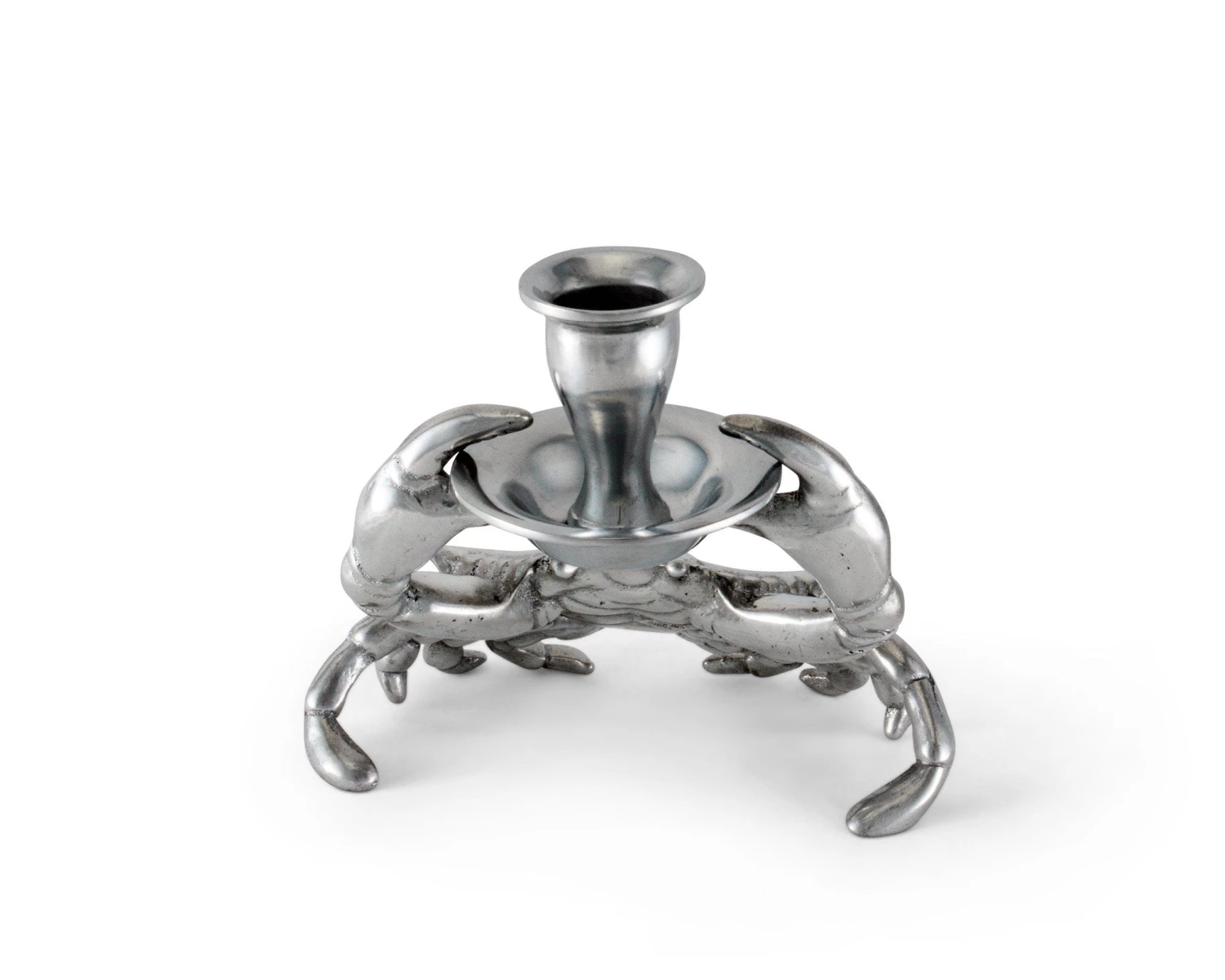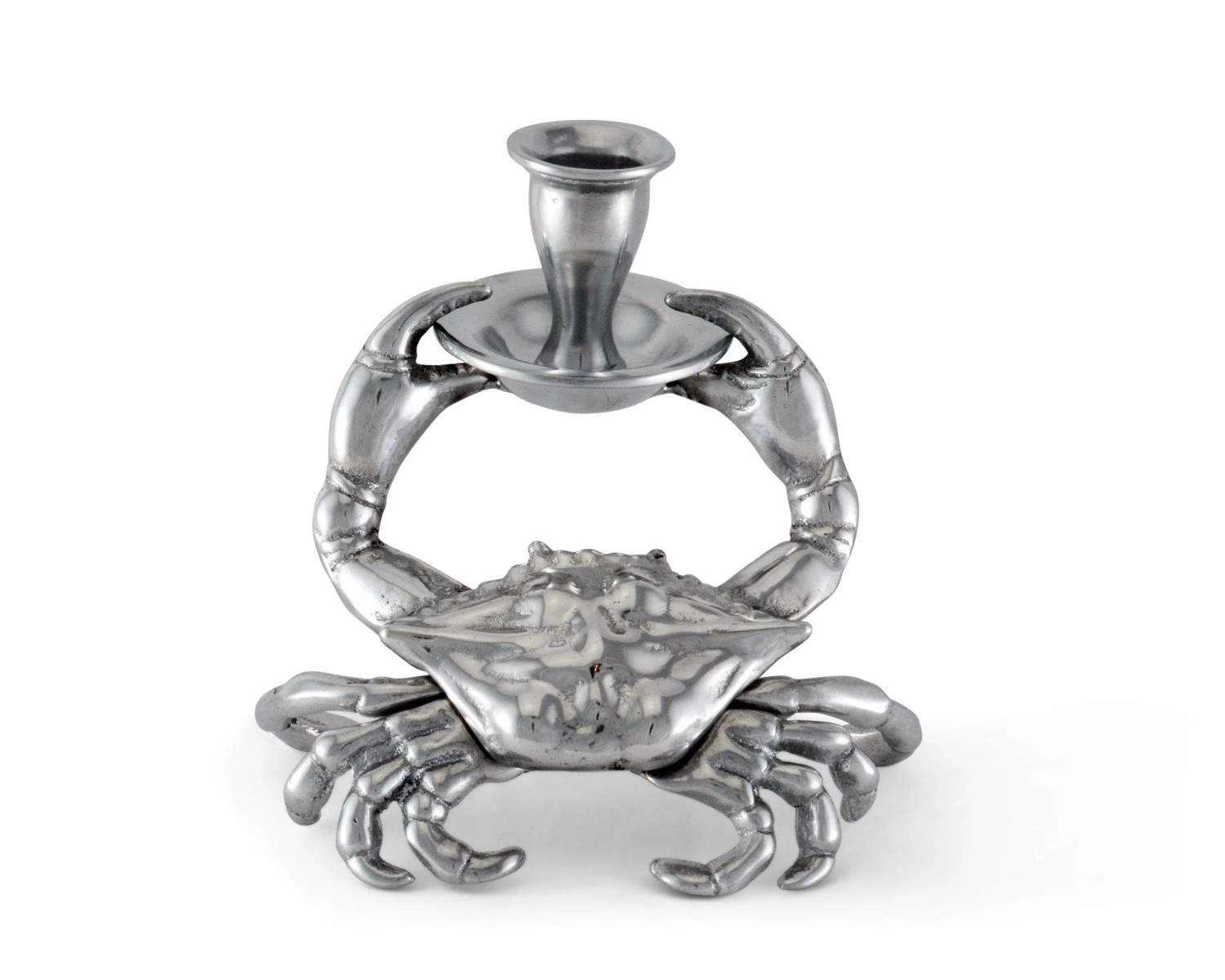 Create an ocean of delight in your home with Arthur Court’s Crab Candle Holder. This taper candle holder features extraordinary detail in our exclusive aluminum alloy. The crab holds a rimmed candle cup securely between its detailed pincered foreclaws.
