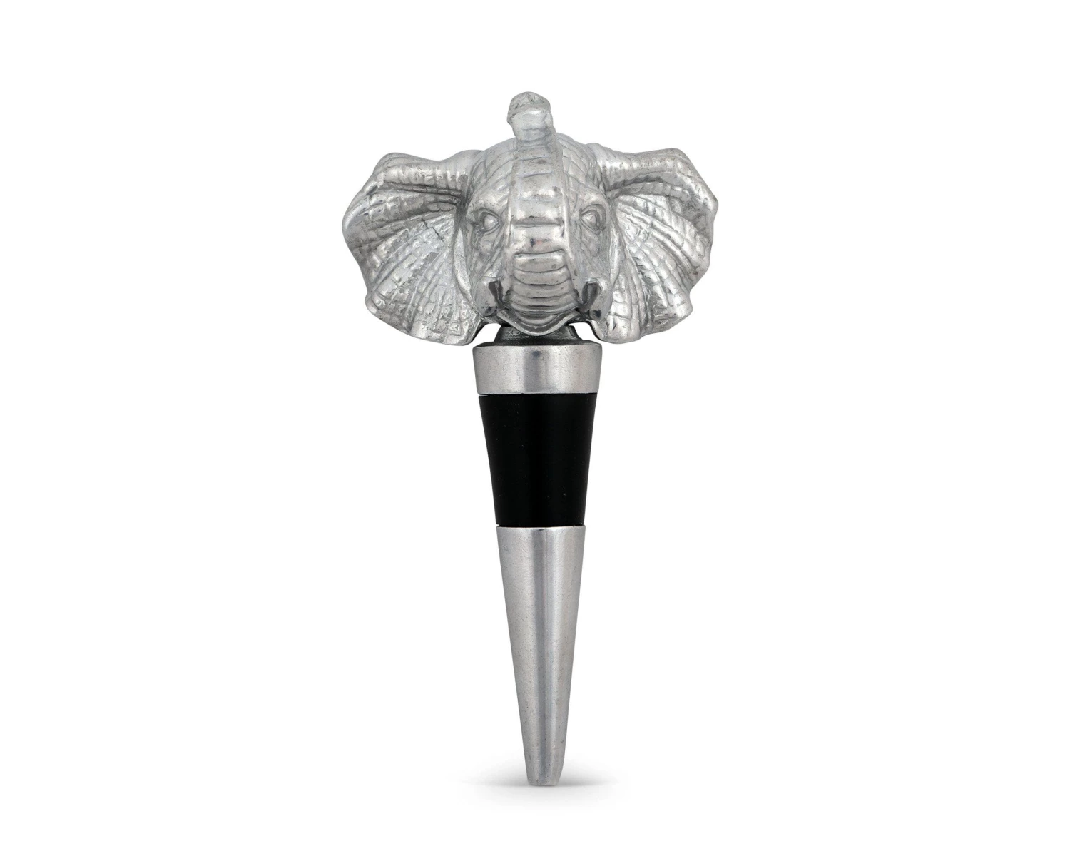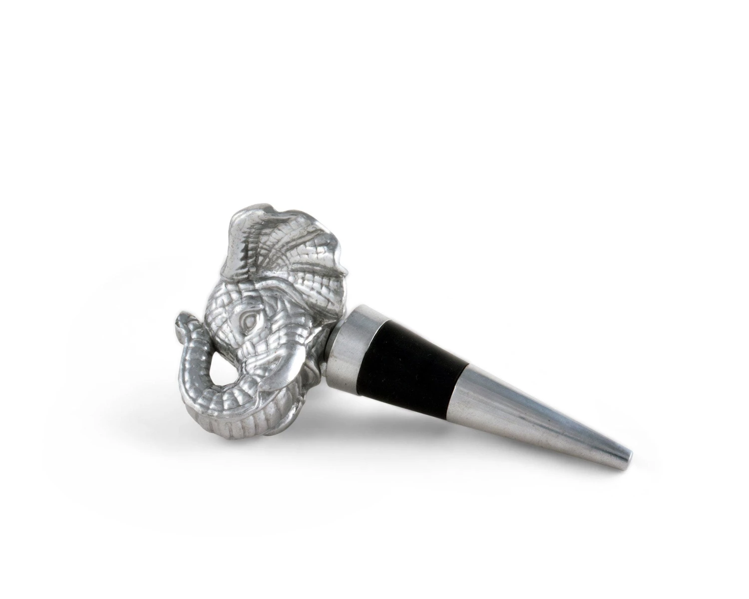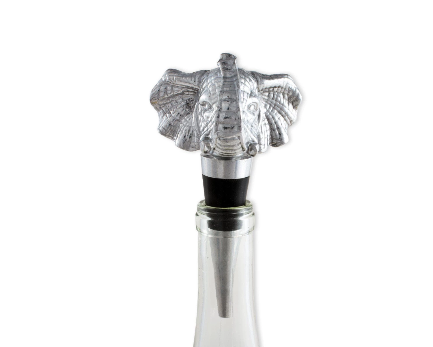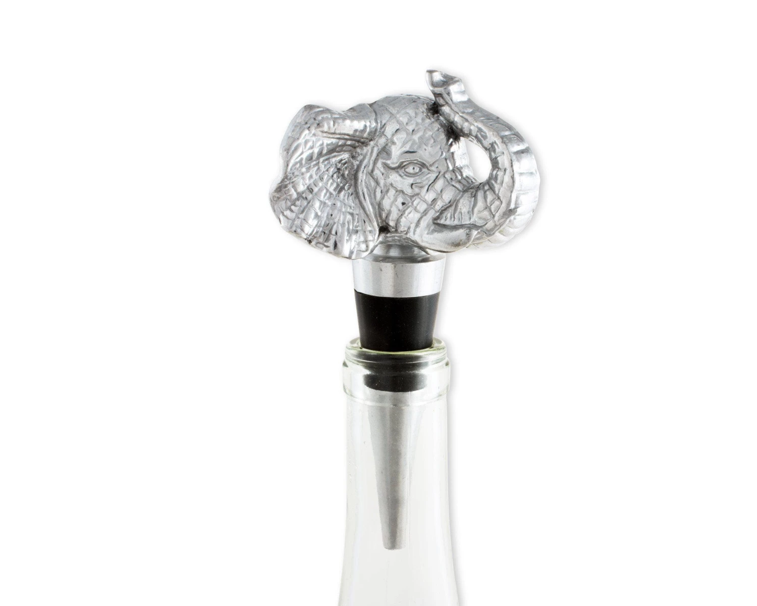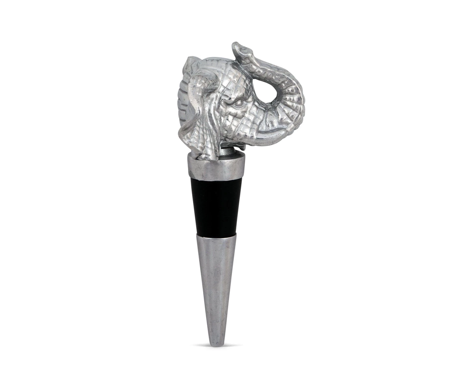 Impart safari-inspired style to your bar area with this Arthur Court elephant bottle stopper. It comes in a gift box, so it makes an excellent present for holidays and housewarming parties, as the finely crafted detailing adds flair to wine bottles for an elegant display. If you’re shopping for the wine lover in your life, this elephant stopper is sure to delight. This stylish stopper is crafted from signature aluminum alloy for durability, and it has a rubber gasket to ensure a tight seal. This bottle stopper features a realistic elephant with its trunk extended for a majestic appearance. It’s not just functional, however; it also keeps wine fresh after it’s been opened. If this Arthur Court elephant bottle holder gets dirty, simply hand wash and dry.