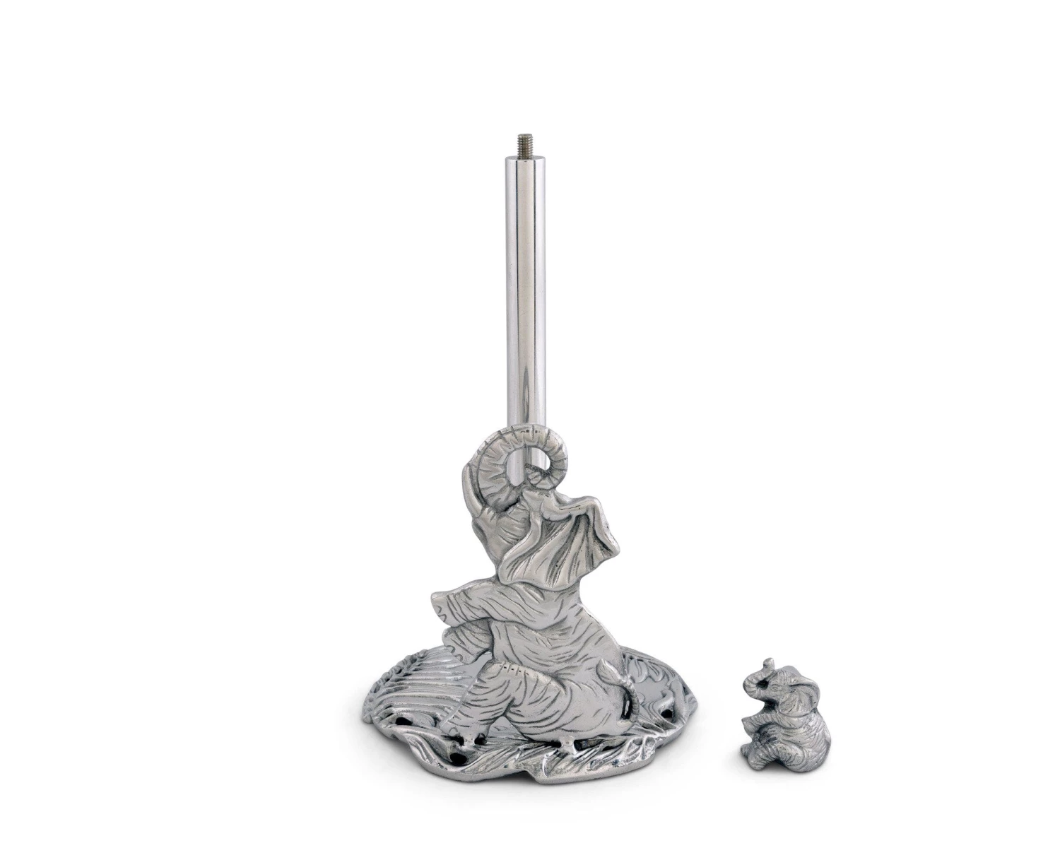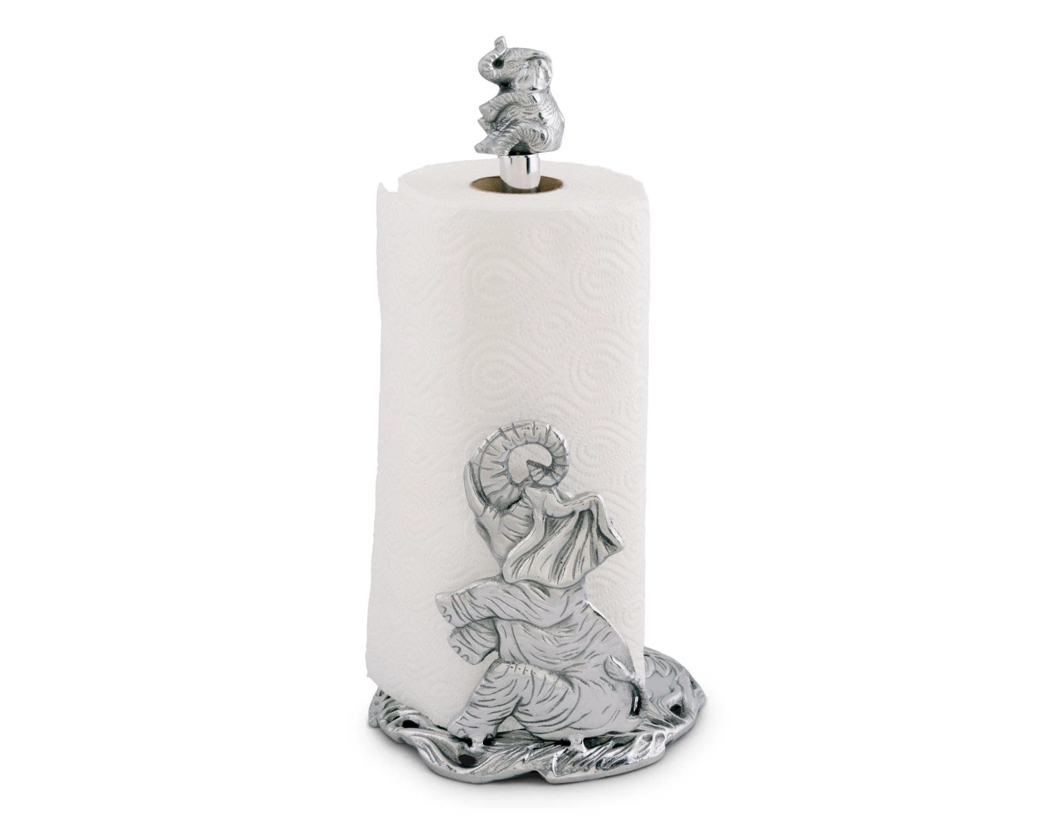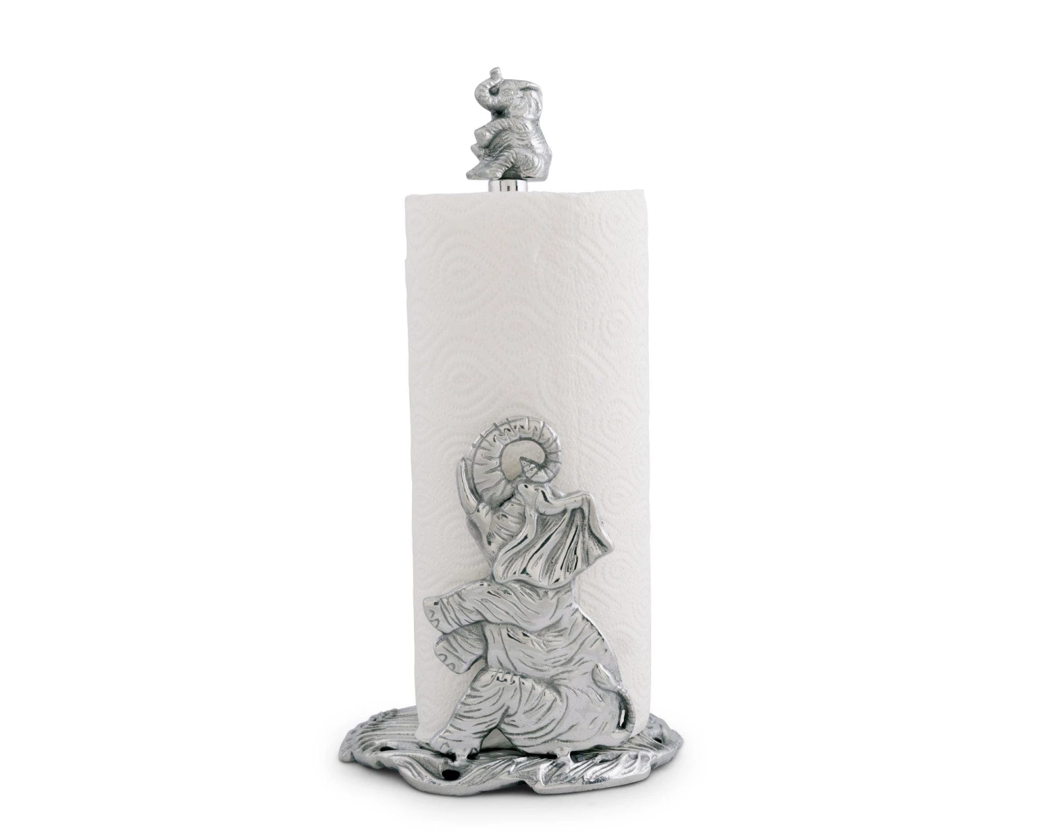 Turn cleaning into a family affair with the sweet pair in Arthur Court’s Elephant Paper Towel Holder. An elephant nuzzles up to the paper towels in this lovely piece, bringing its front legs up to reach for its baby that sits topside.