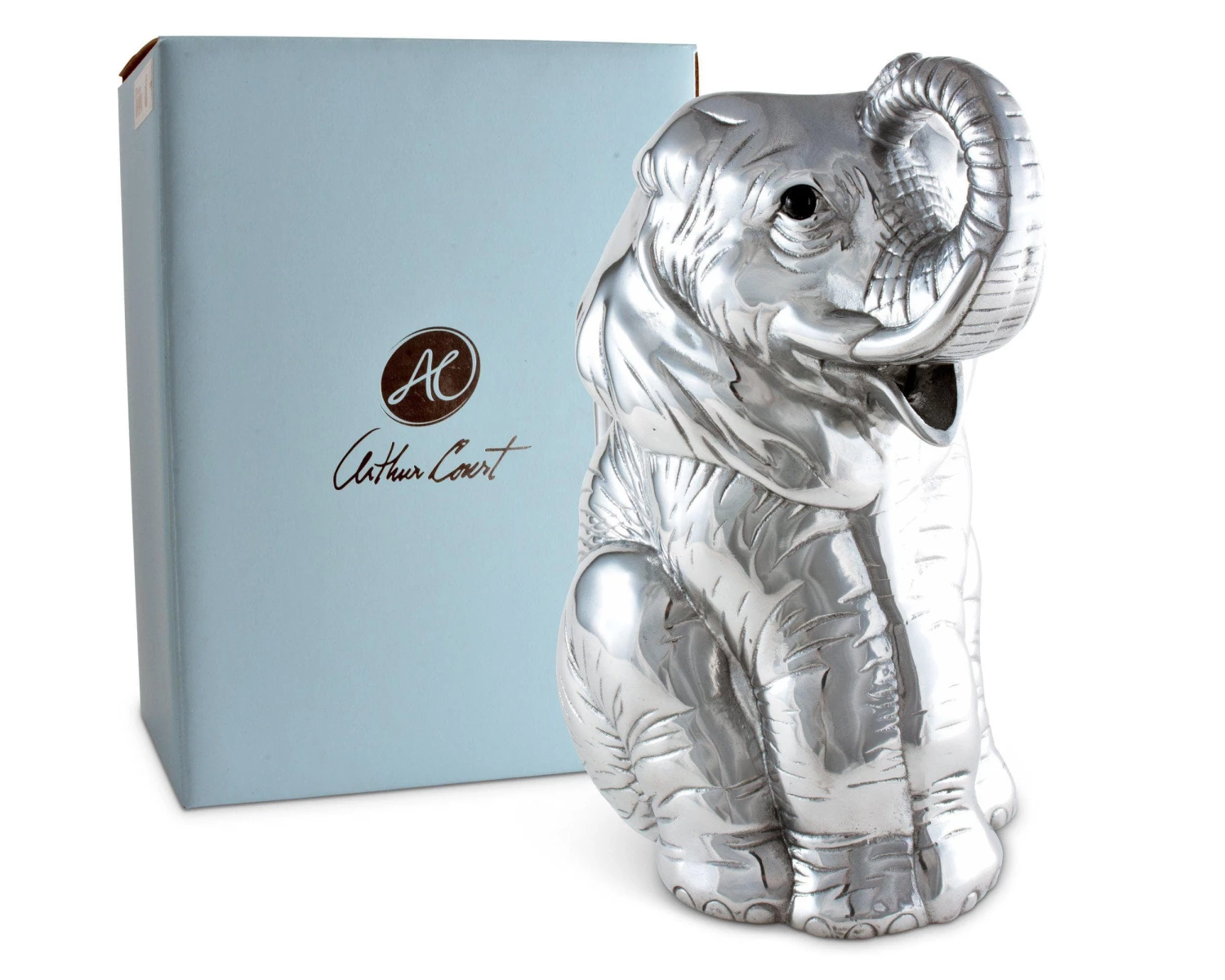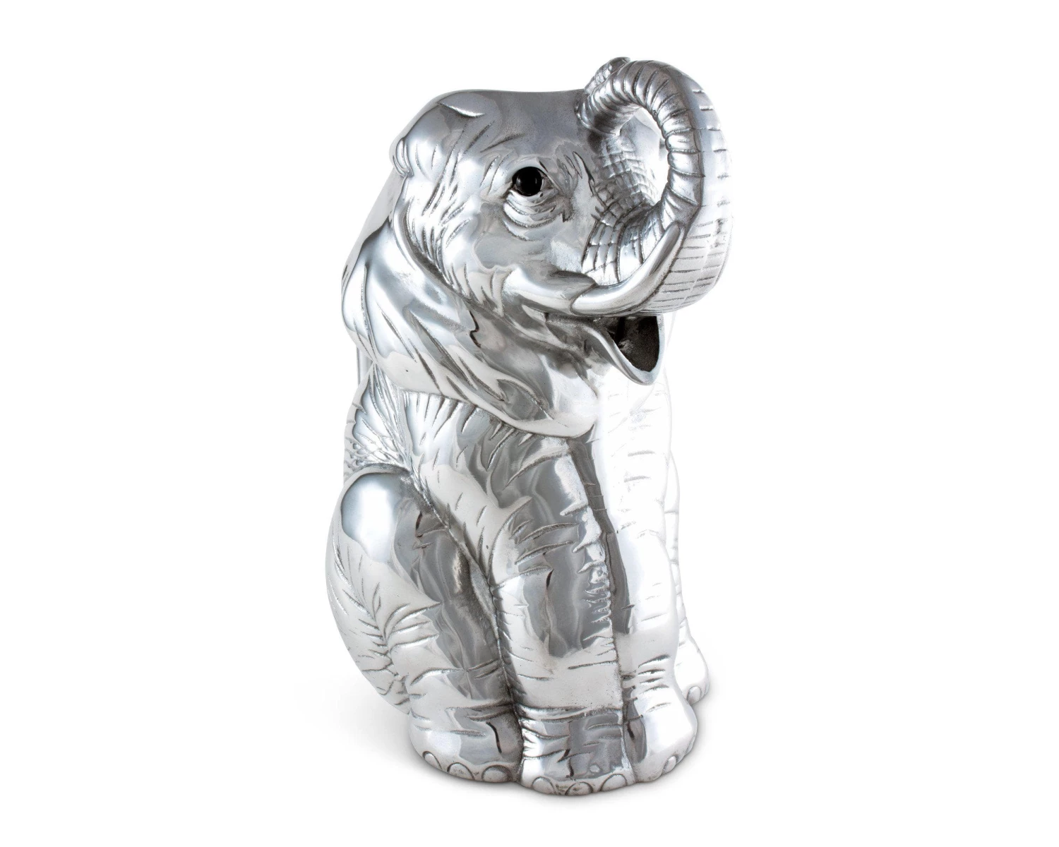 Lounge and enjoy the striking realism of Arthur Court’s Elephant Pitcher. Mirroring a dog’s obedient posture, this elephant sits on its hind legs, patiently waiting for someone to grab the handle on its back.