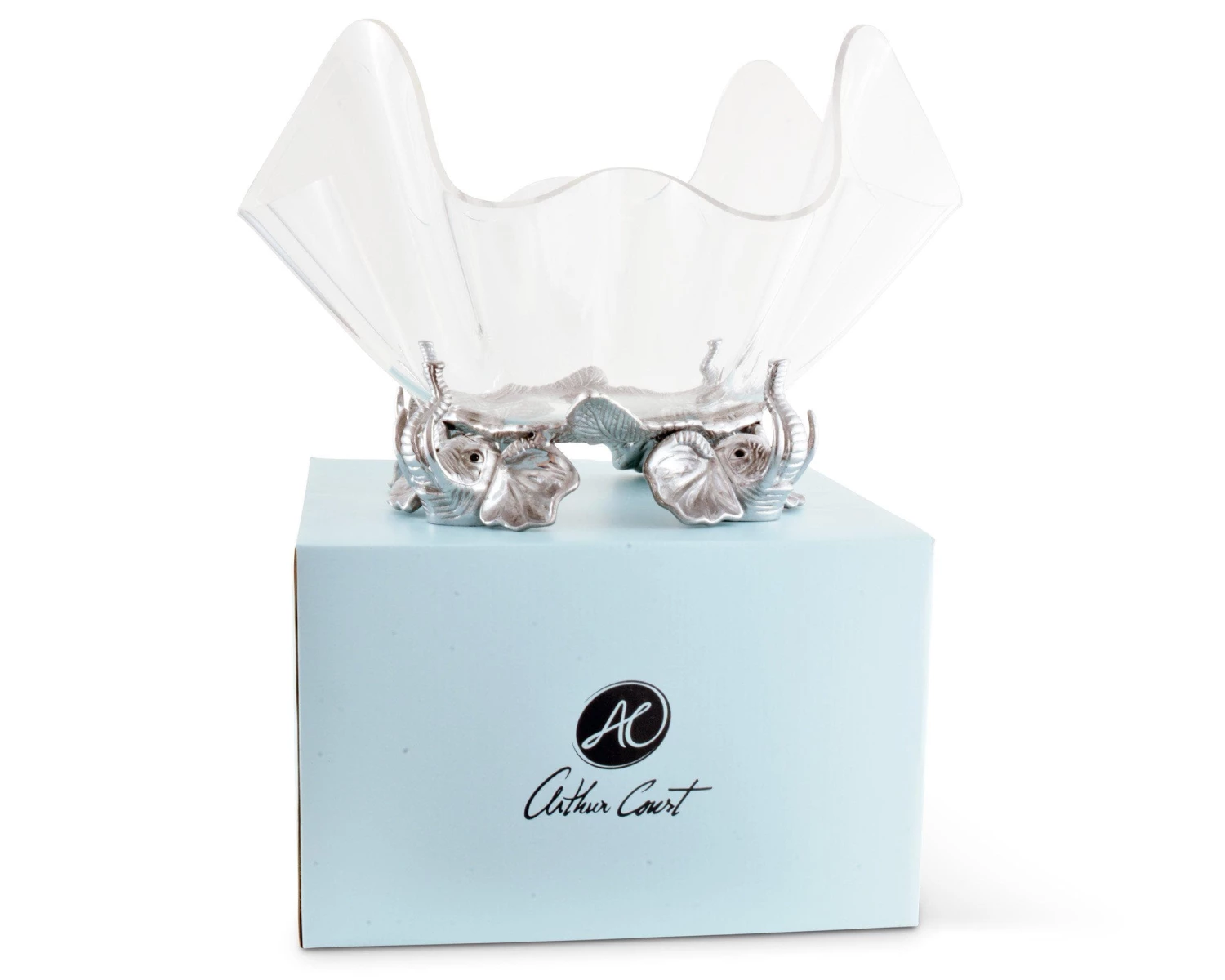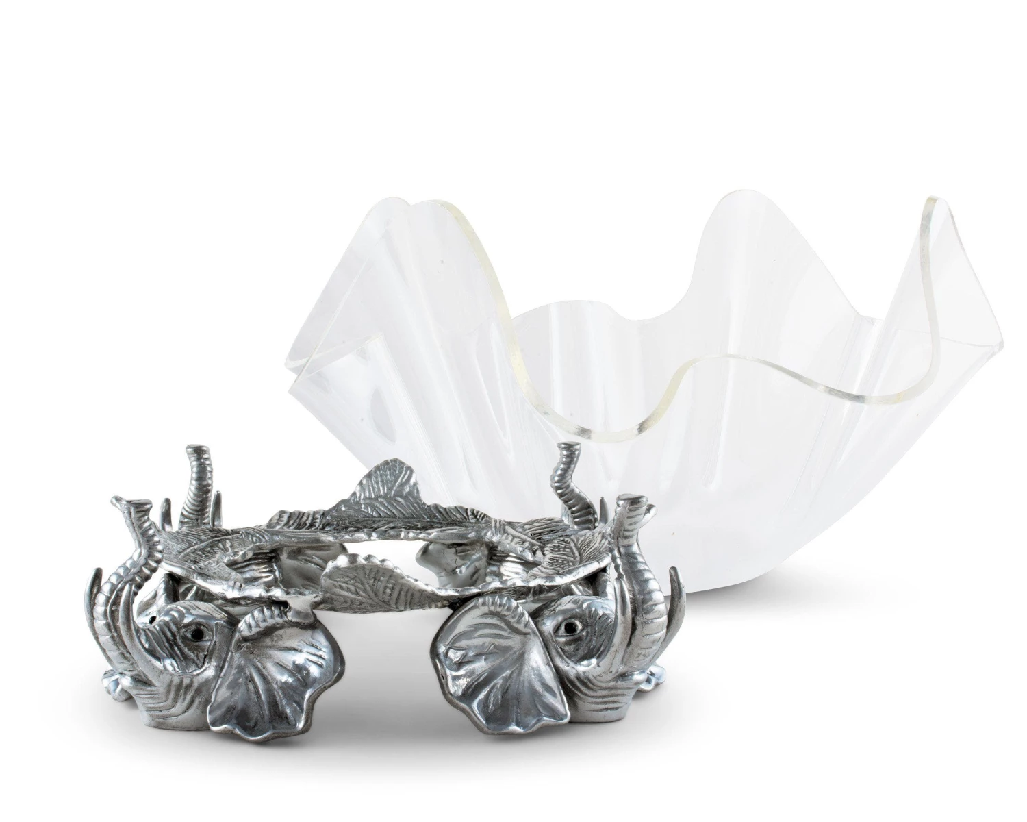 Support a large fruit display with the help of these gentle giants in Arthur Court’s 14″ Elephant Stand Acrylic Bowl.