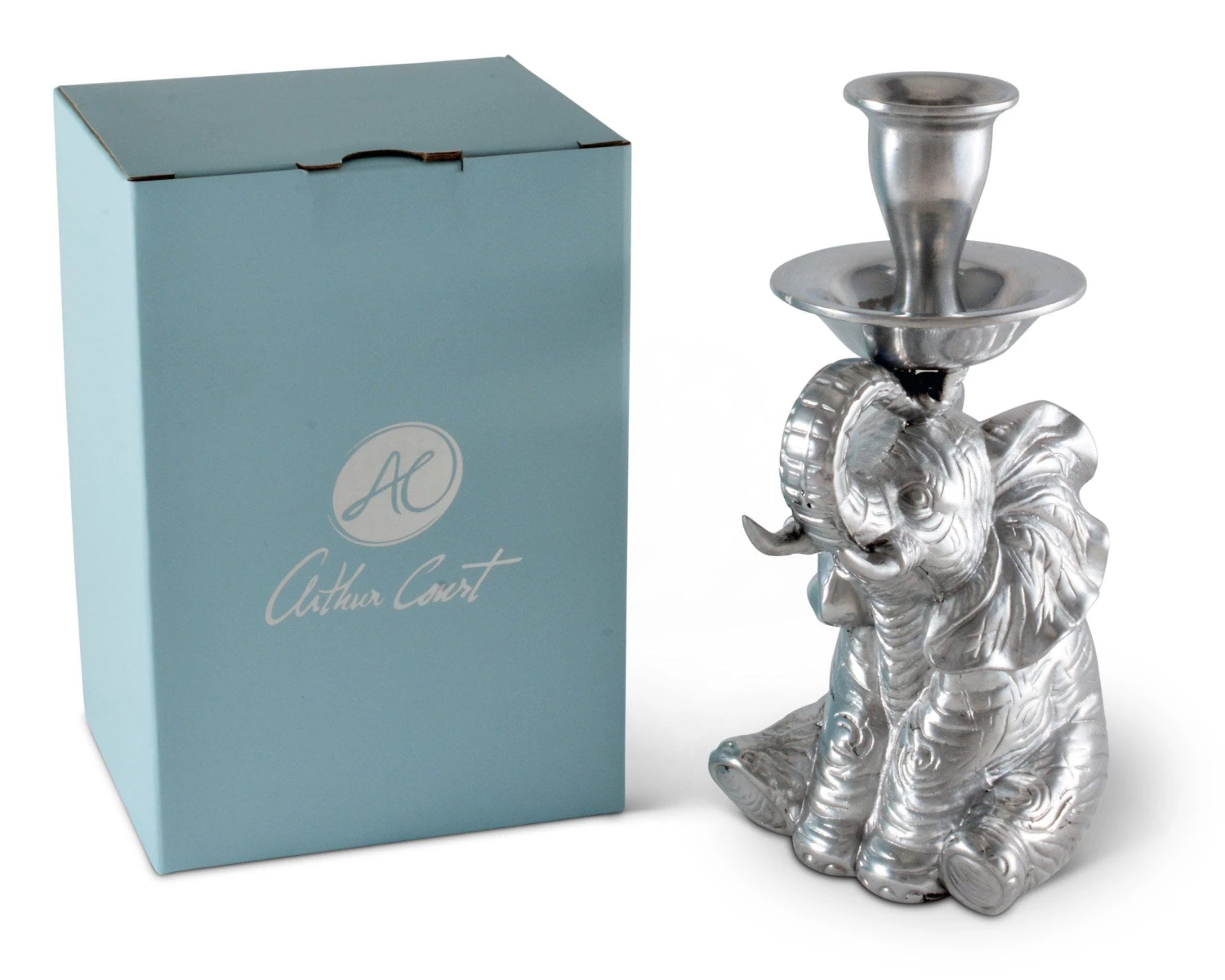To welcome positive energy to your home or office, place one or more of Arthur Court’s Elephant Candle Holders facing the front entrance. The raised trunk on our delightfully detailed Elephant figure symbolizes good luck. It also supports the rimmed taper candle cup on these enigmatic figures of the gentle giant. Each holder sold individually.
