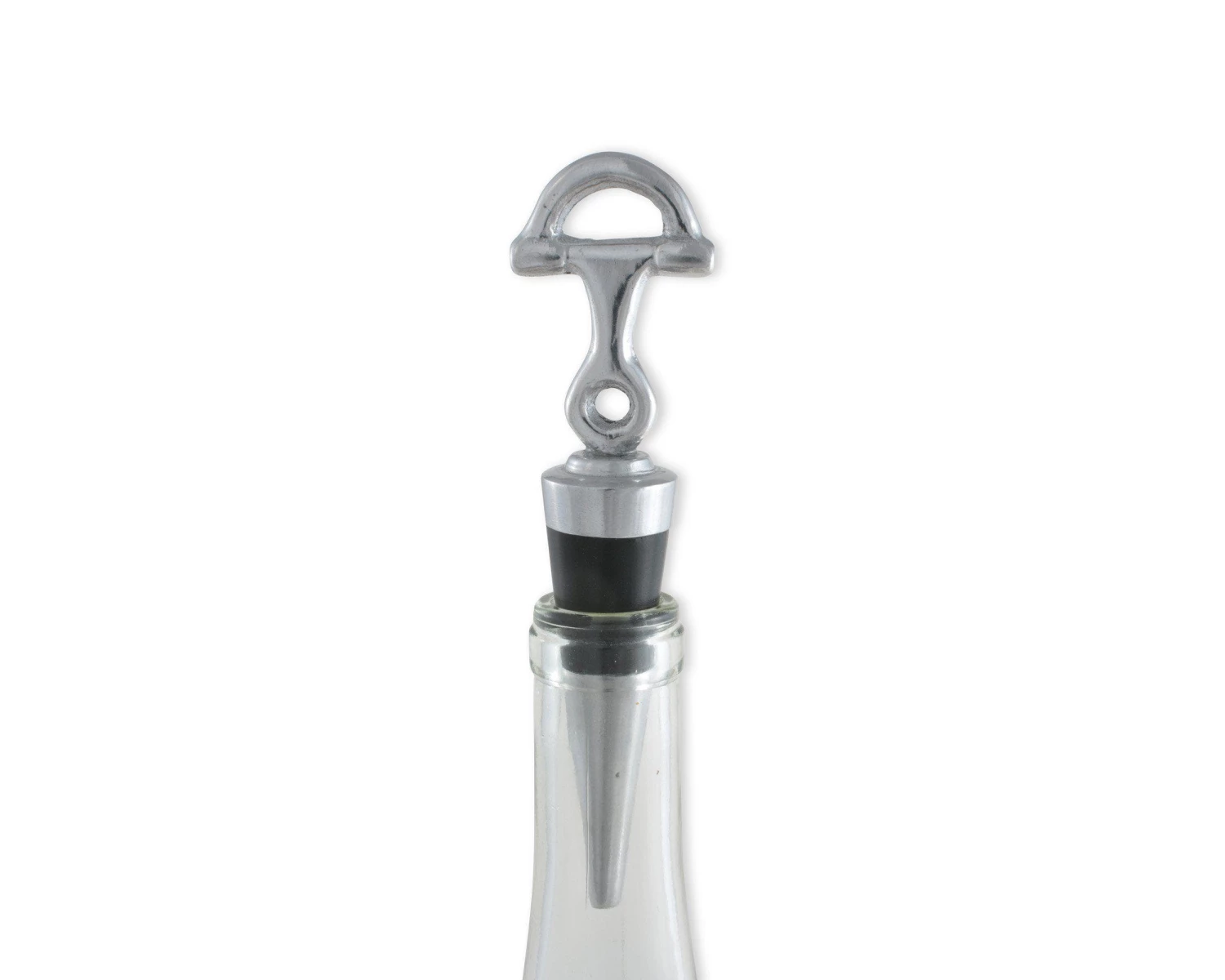 Maintain the quality of leftover wine with this Arthur Court Equestrian bottle stopper. Handmade from a premium signature aluminum alloy and shaped into a horse-inspired design, this stopper is both beautiful and functional. The rubber gasket creates a tight seal to preserve everything from a rich cabernet sauvignon to a light pinot grigio without excess oxidation, and the tapered point slides smoothly into the neck of your unfinished bottle. At 5.5 inches long, this piece slips easily into a server’s apron so you can keep it on hand during parties. Whether you’re hosting a fundraiser for your local stables or celebrating the acquisition of a new Arabian stallion with a group of friends, the bit-shaped handle sets the right tone for your event. This bottle stopper comes packed in a gift box for convenient wrapping and presentation.