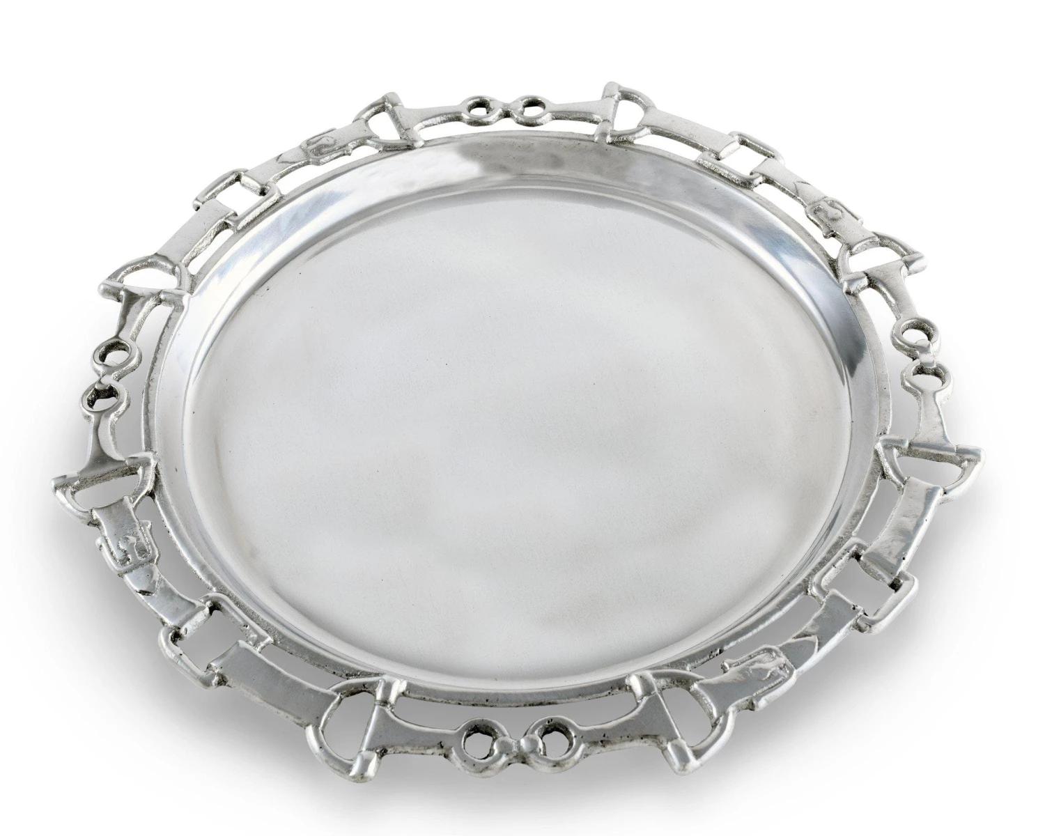 Incorporate riding instruments into the serve ware with Arthur Court’s 12″ Equestrian Round Tray.