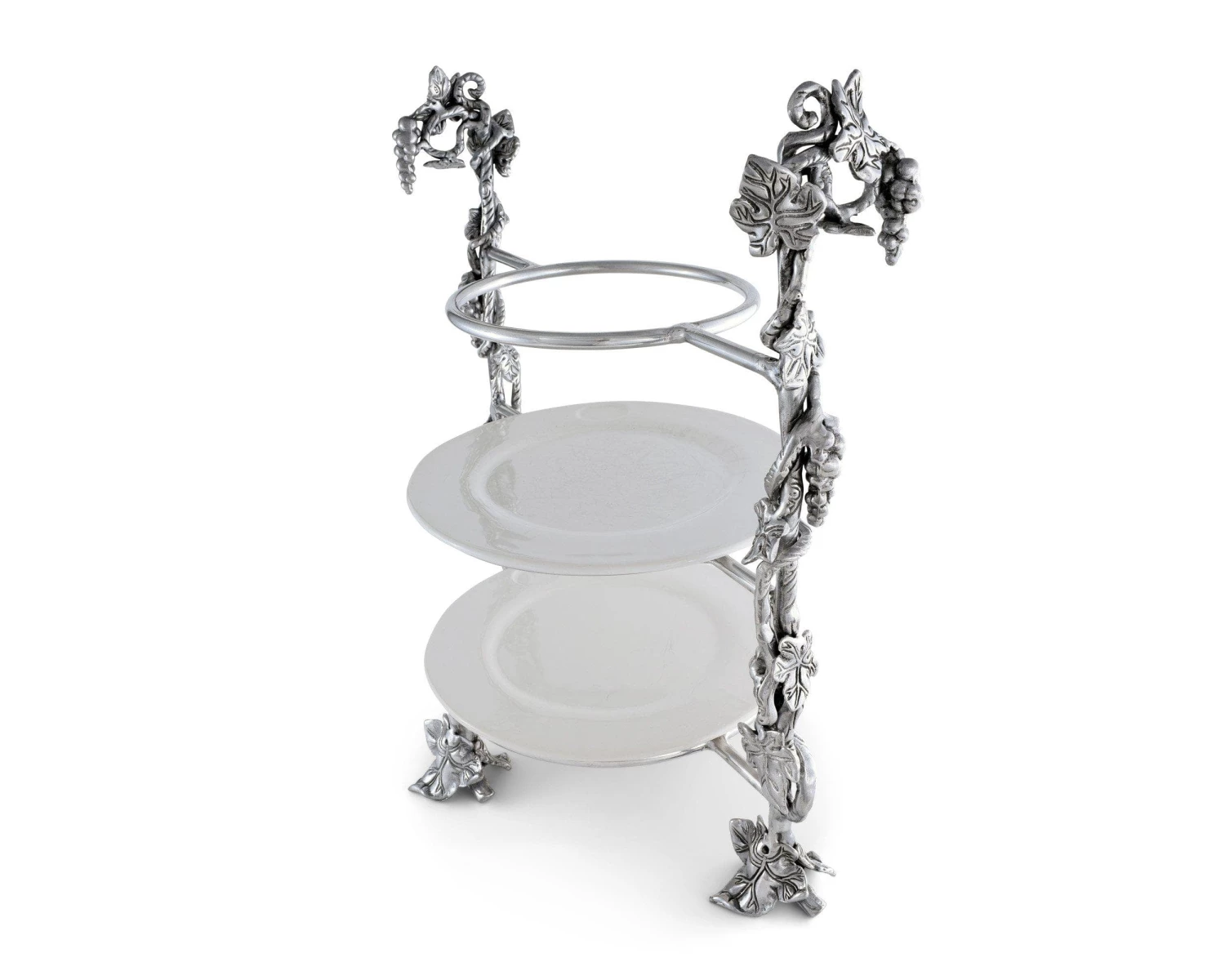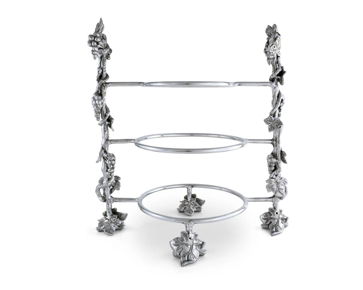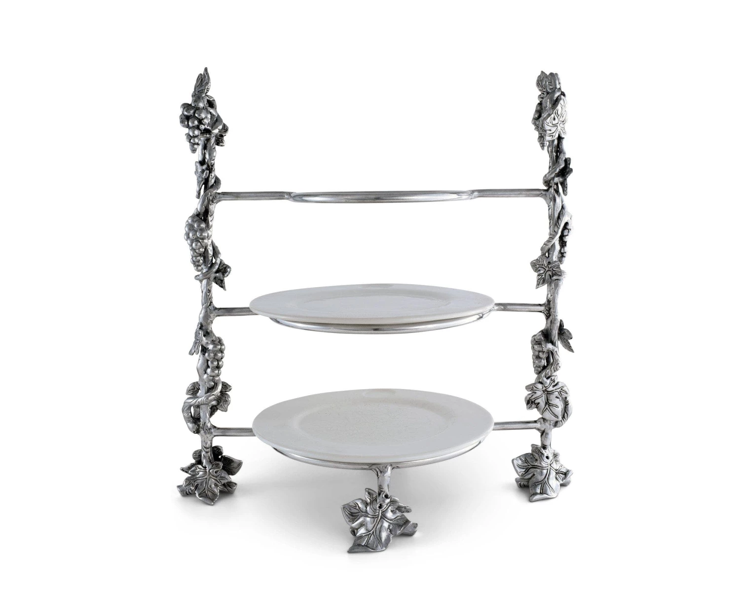 Perfect for entertaining, this elegant Arthur Court grape buffet plate caddy has three levels and is designed to accommodate dinner plates, salad plates, or rim soups. This piece is great for stacking your tableware out on the buffet, or for serving appetizers, desserts, pasties and more.