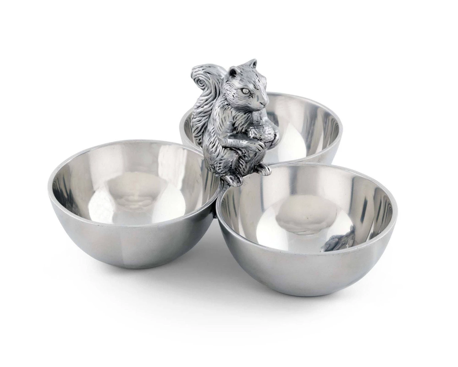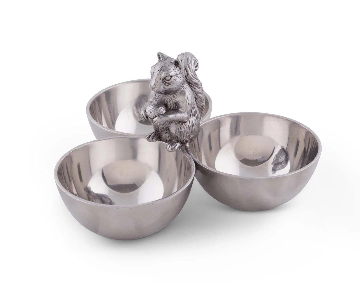 A stylish bowl dish that serves many purposes. Perfect as a fancy bar utensil to keep your fresh lemons, limes and other cocktail ingredients handy and still beautifully displayed. Also great for your signature dips or your favorite nut variations on a game night with friends. Handcrafted with delicate detail, the little squirrel adds a delightful bit of whimsy to your home and table.