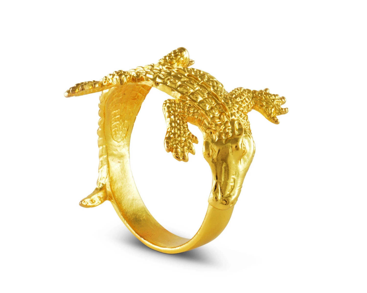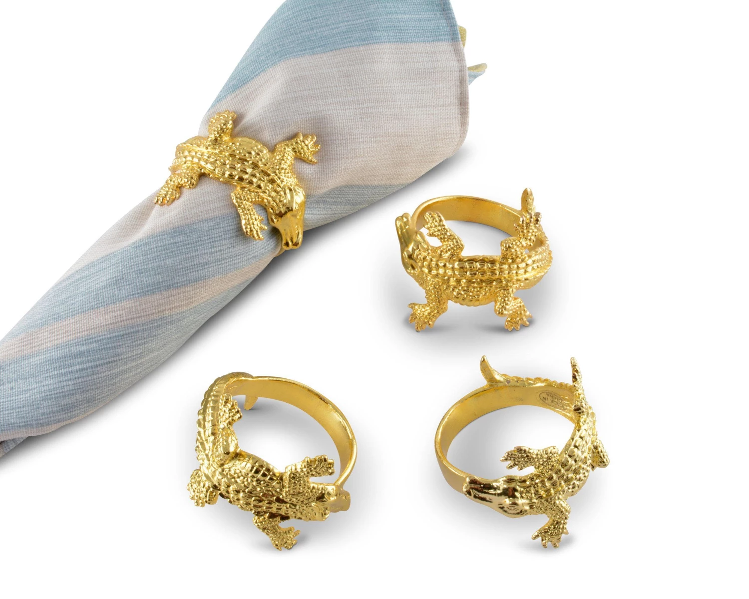 Add elegant whimsy to your well dressed table with Golden Gator Napkin Rings from Arthur Court.