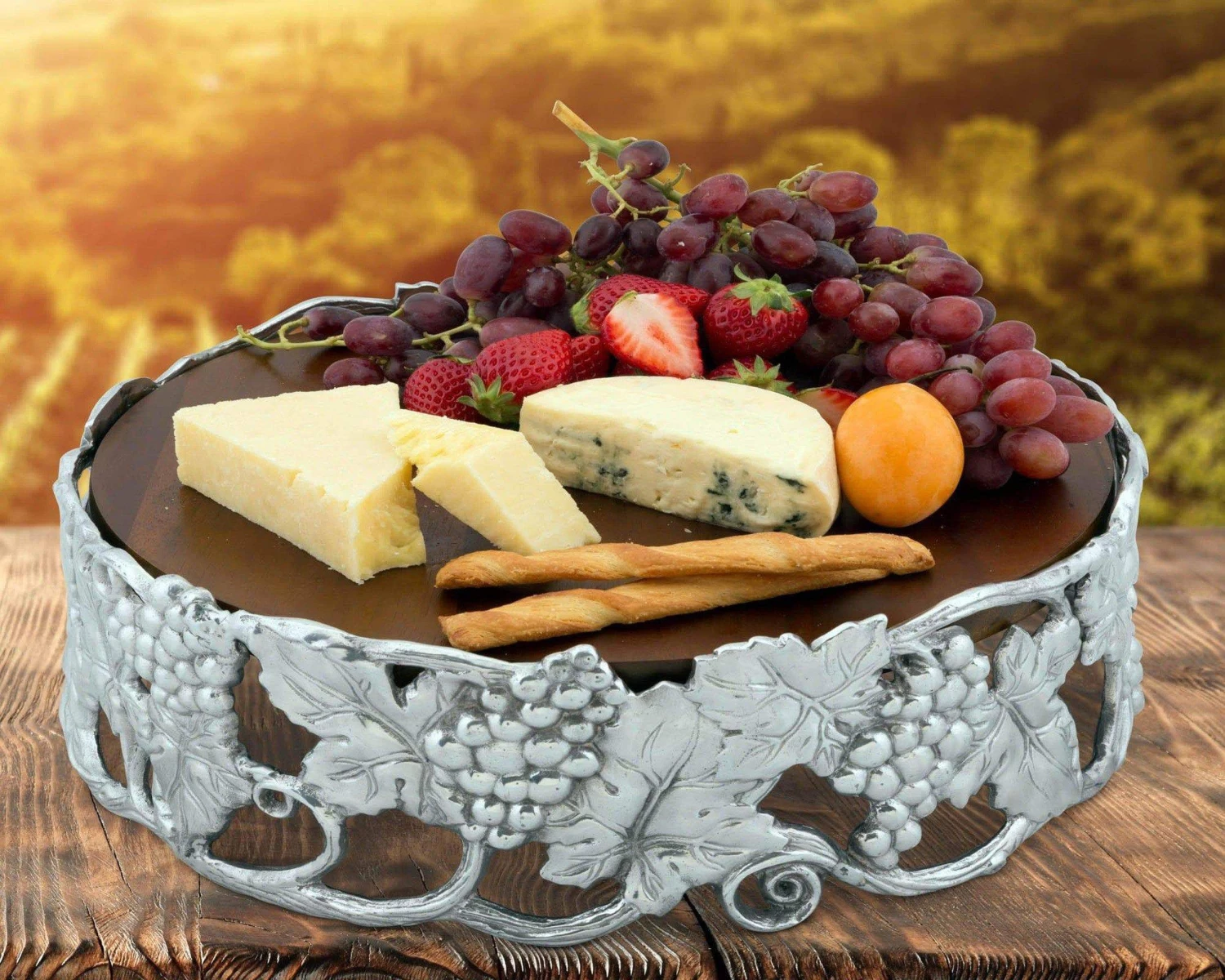 Showcase your favorite appetizers on the rich, wooden top of this Grape Cheese Pedestal from Arthur Court.