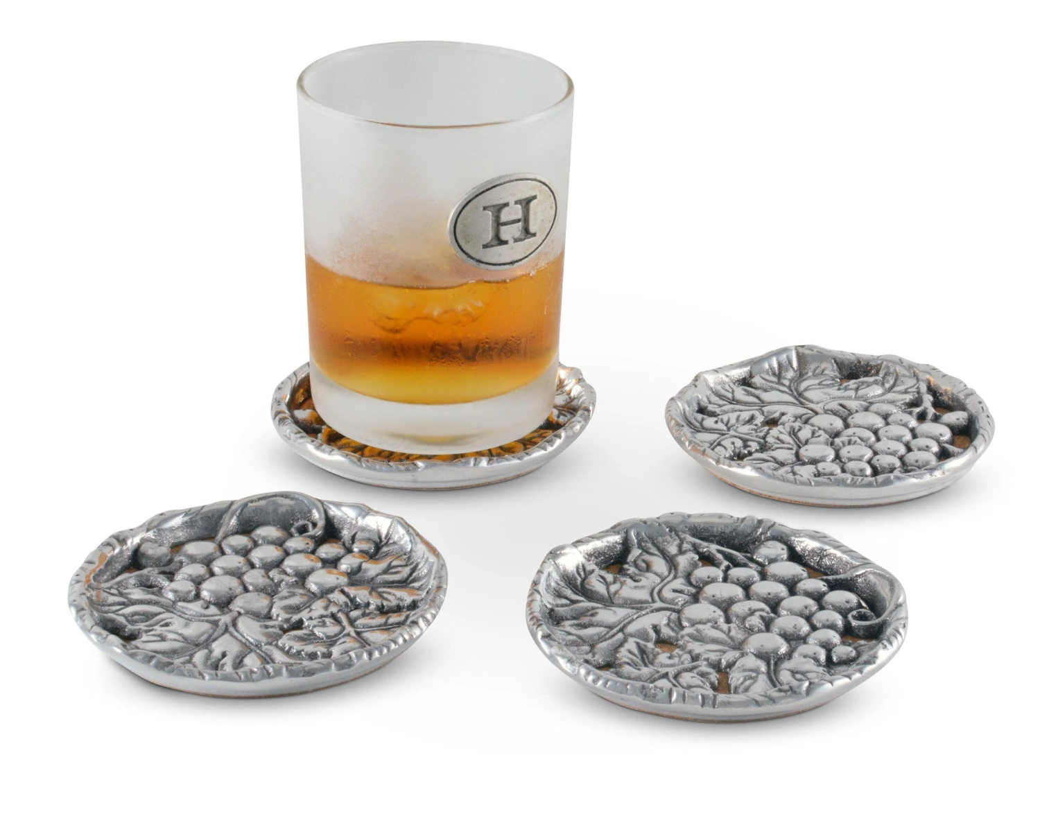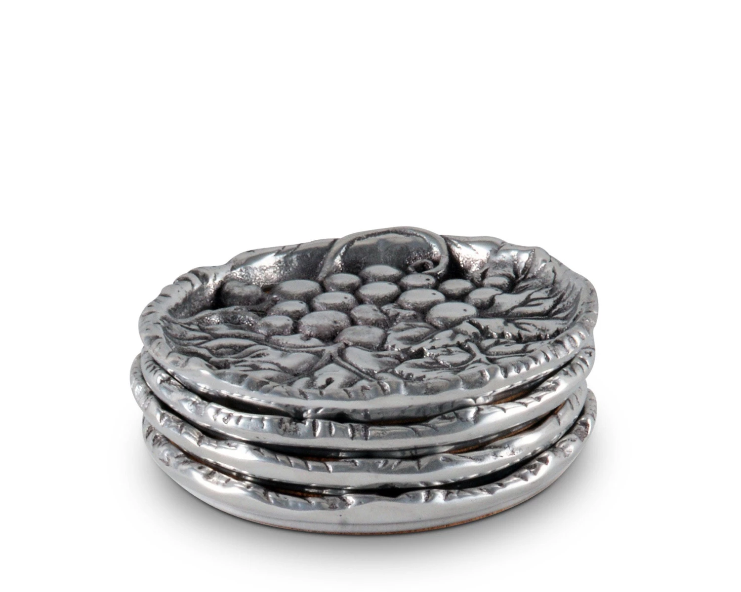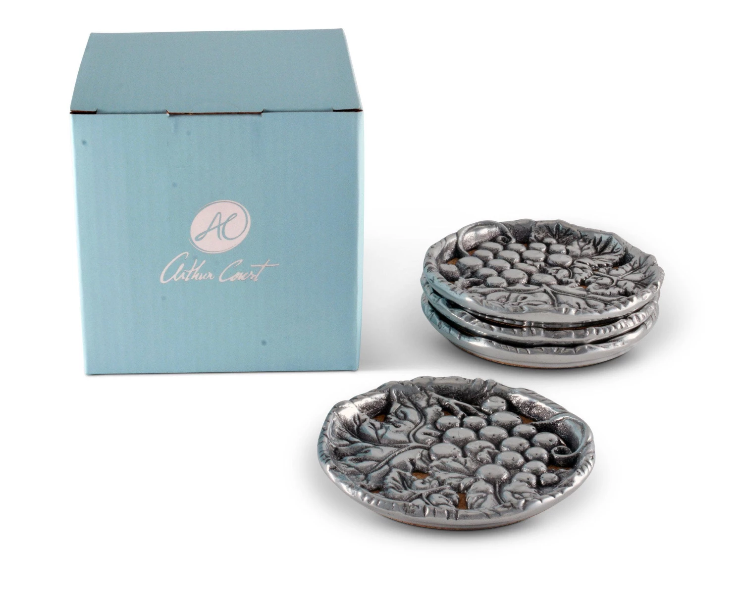 A raised edge keeps drinks secure and your table spot free when you use Arthur Court’s Grape Drink Coasters. The coasters feature a bunch of grapes within a cluster of leaves, as you would find them on the vine. Launched, in the early 1990’s our most popular line has grown and evolved to offer a shimmering assortment to satisfy all your entertainment needs.