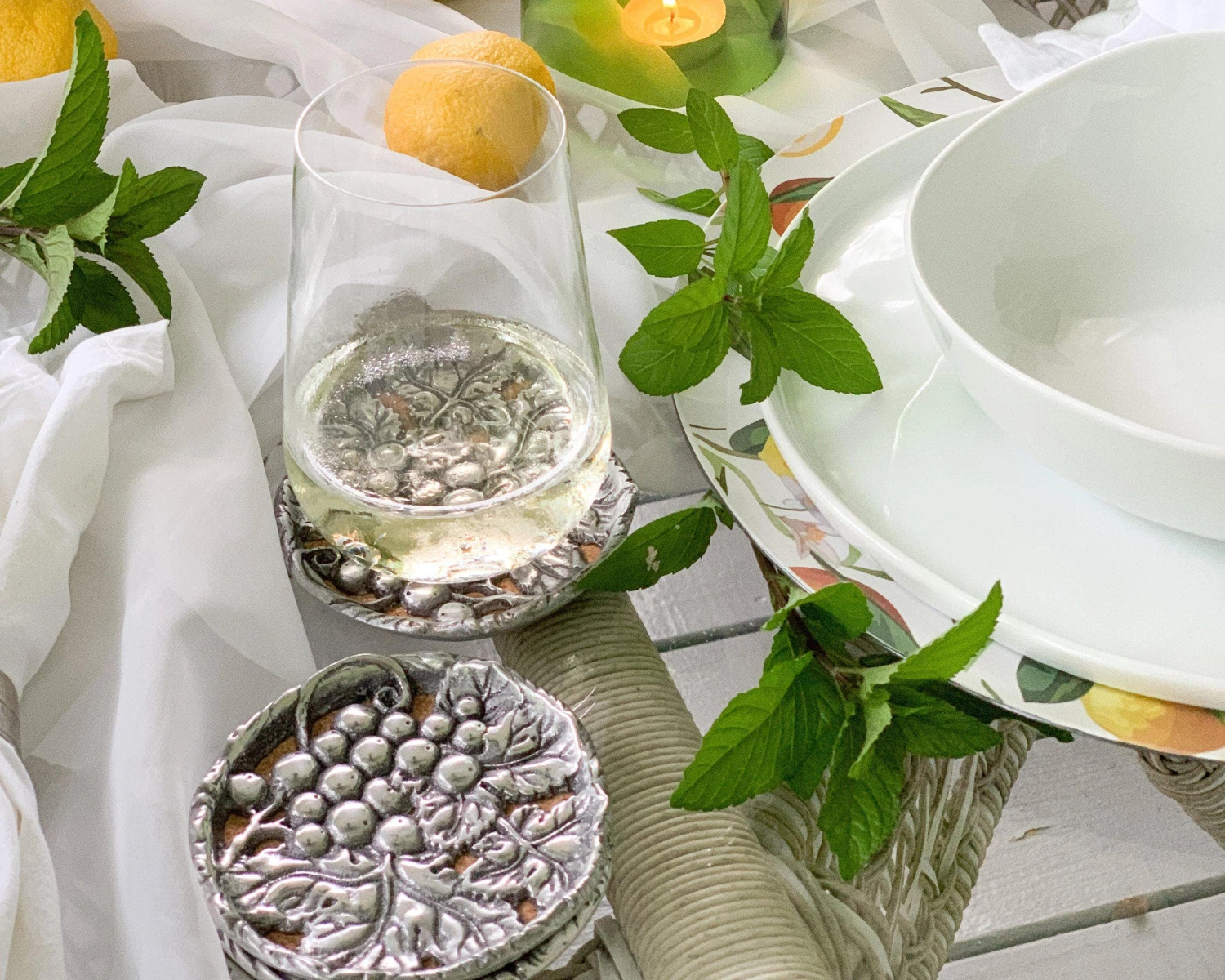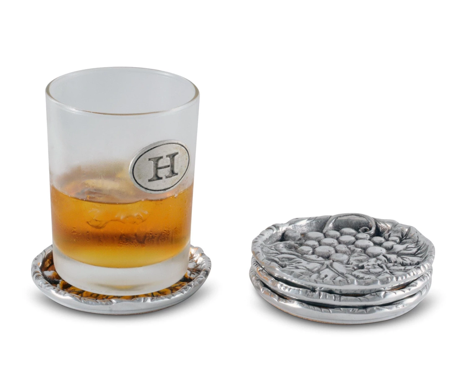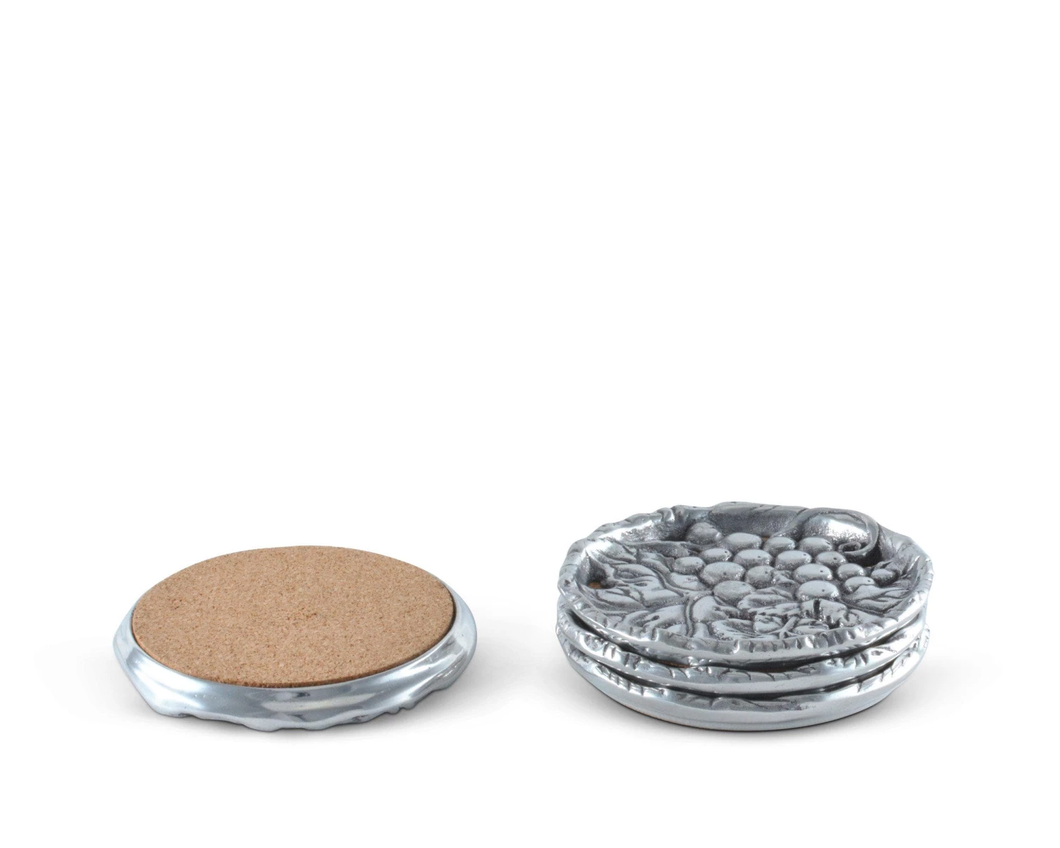 A raised edge keeps drinks secure and your table spot free when you use Arthur Court’s Grape Drink Coasters. The coasters feature a bunch of grapes within a cluster of leaves, as you would find them on the vine. Launched, in the early 1990’s our most popular line has grown and evolved to offer a shimmering assortment to satisfy all your entertainment needs.