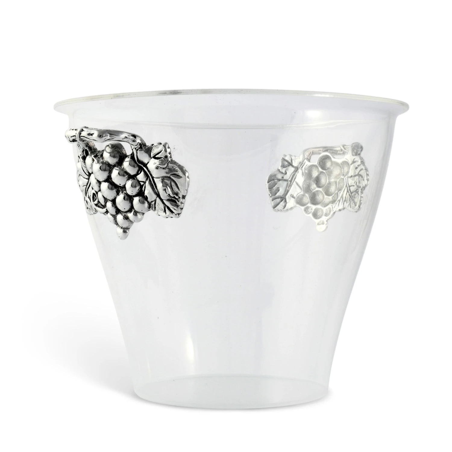 Celebrate with timeless elegance by stowing champagne in this grape handle acrylic ice bucket. Intricately detailed aluminum grapes comprise the handles to mesh with vineyard and Tuscan-inspired themes and enable easy carrying from counter to table.