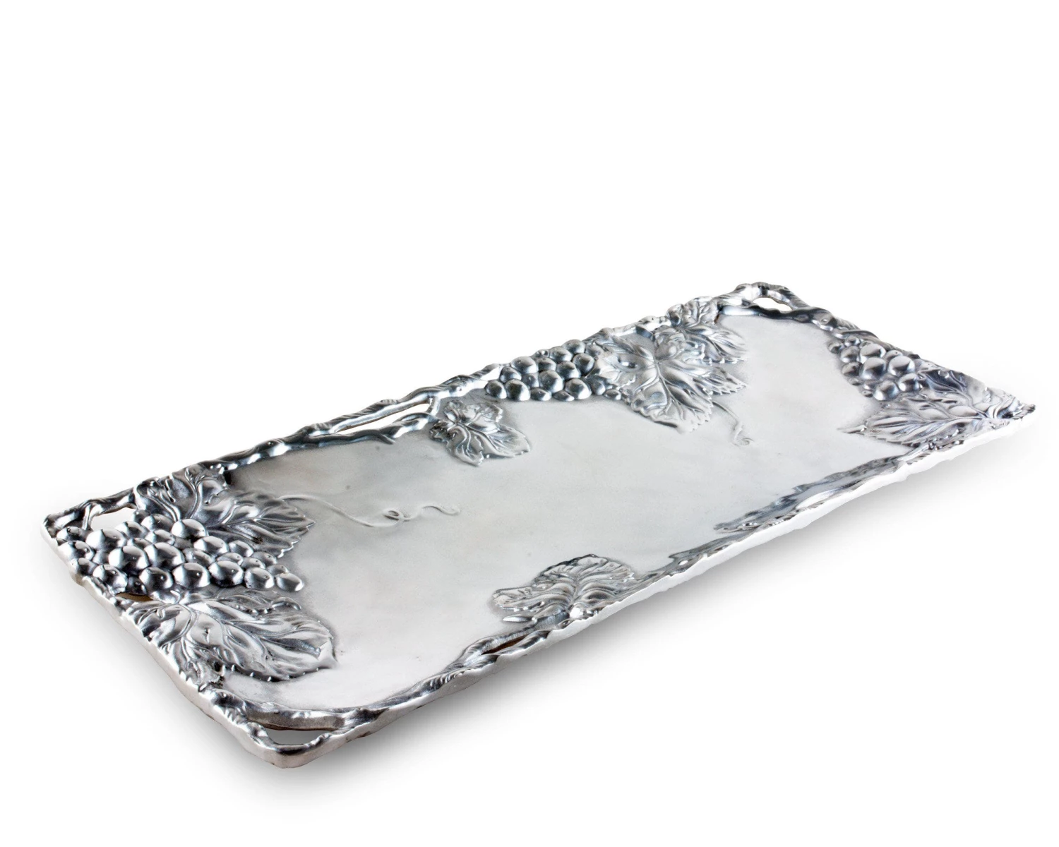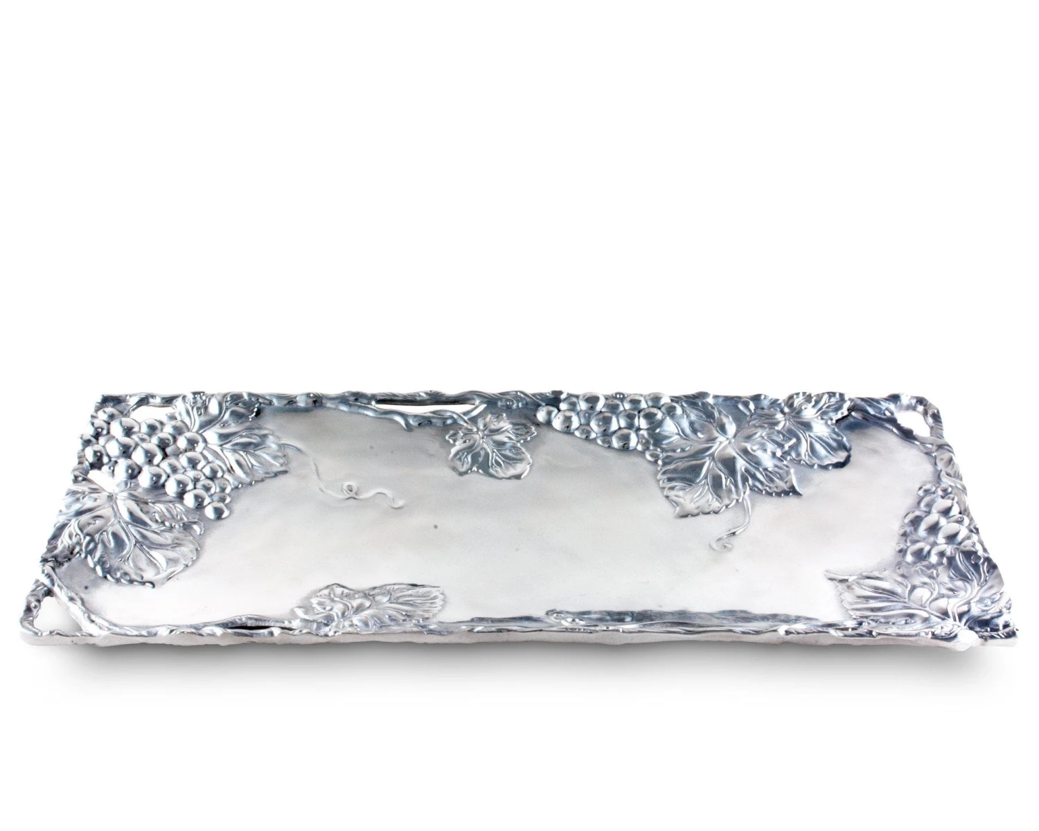 Twisting vines form this piece’s openwork border, while more branch off other designs in the interior. Remarkably detailed bundles of grapes and leaves show picturesque definition as they adorn multiple sides of this handmade, aluminum tray. Incorporate the vineyard and its various forms into your serve ware with Arthur Court’s Grapevine Oblong Tray.