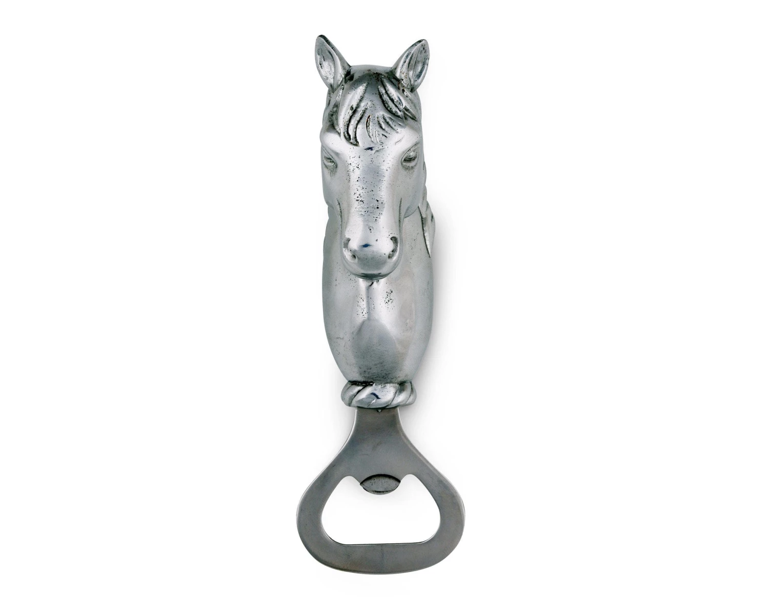 A beautiful horse head adorns this piece, its stoic demeanor reflecting the honor bestowed upon these animals. The lifelike detail in its perky ears and elongated muzzle only accentuate this handmade, aluminum opener.