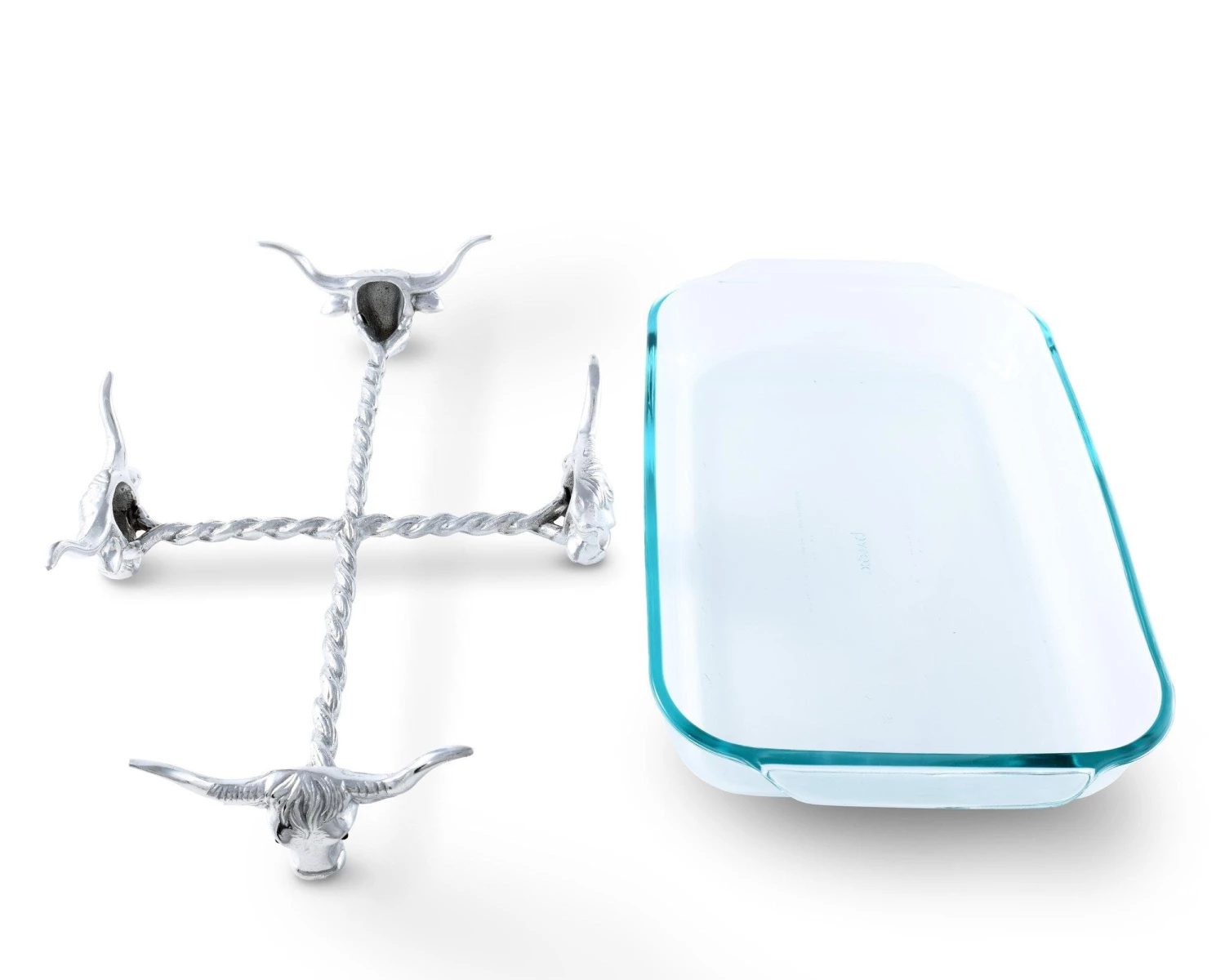Hand-crafted in sand-cast aluminum to last a lifetime, our decorative serving tray is heat resistant and perfectly fits a 9”x13” pyrex glass (included). Makes your dining table look great while protecting your furniture and counters from the hot baking dish.
