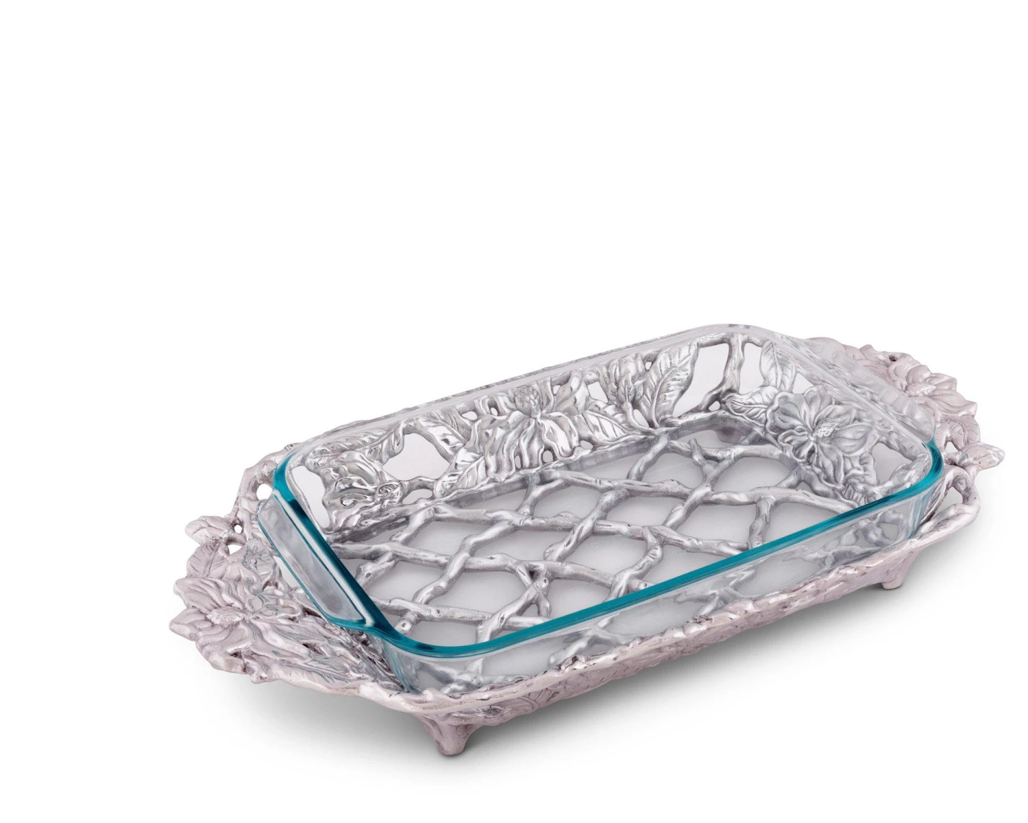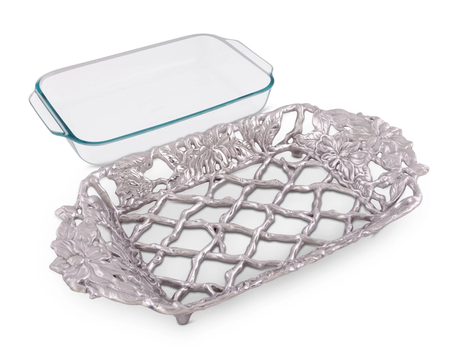 Bake the perfect casserole or lasagna in the Pyrex before placing it inside our beautiful 3-Qt Magnolia Holder from Arthur Court.