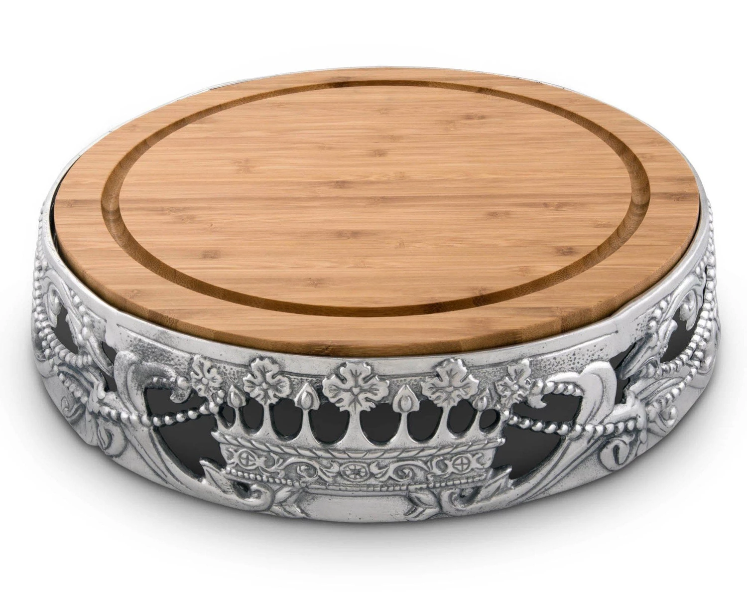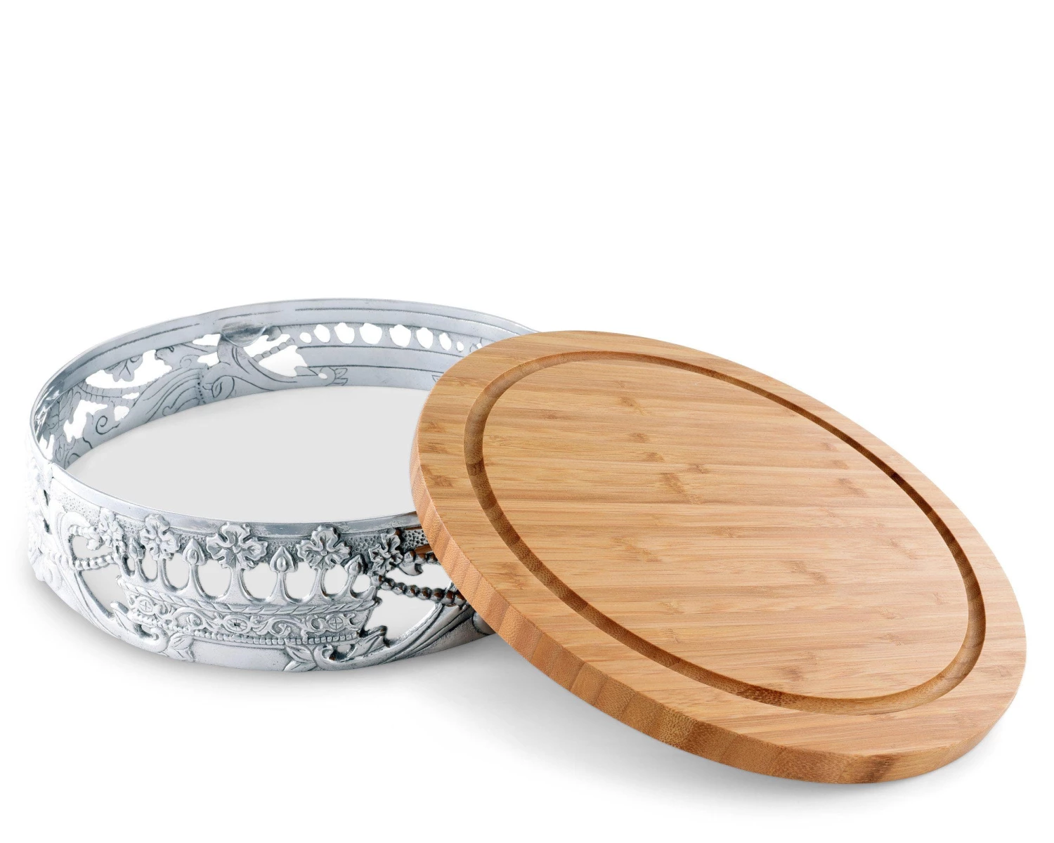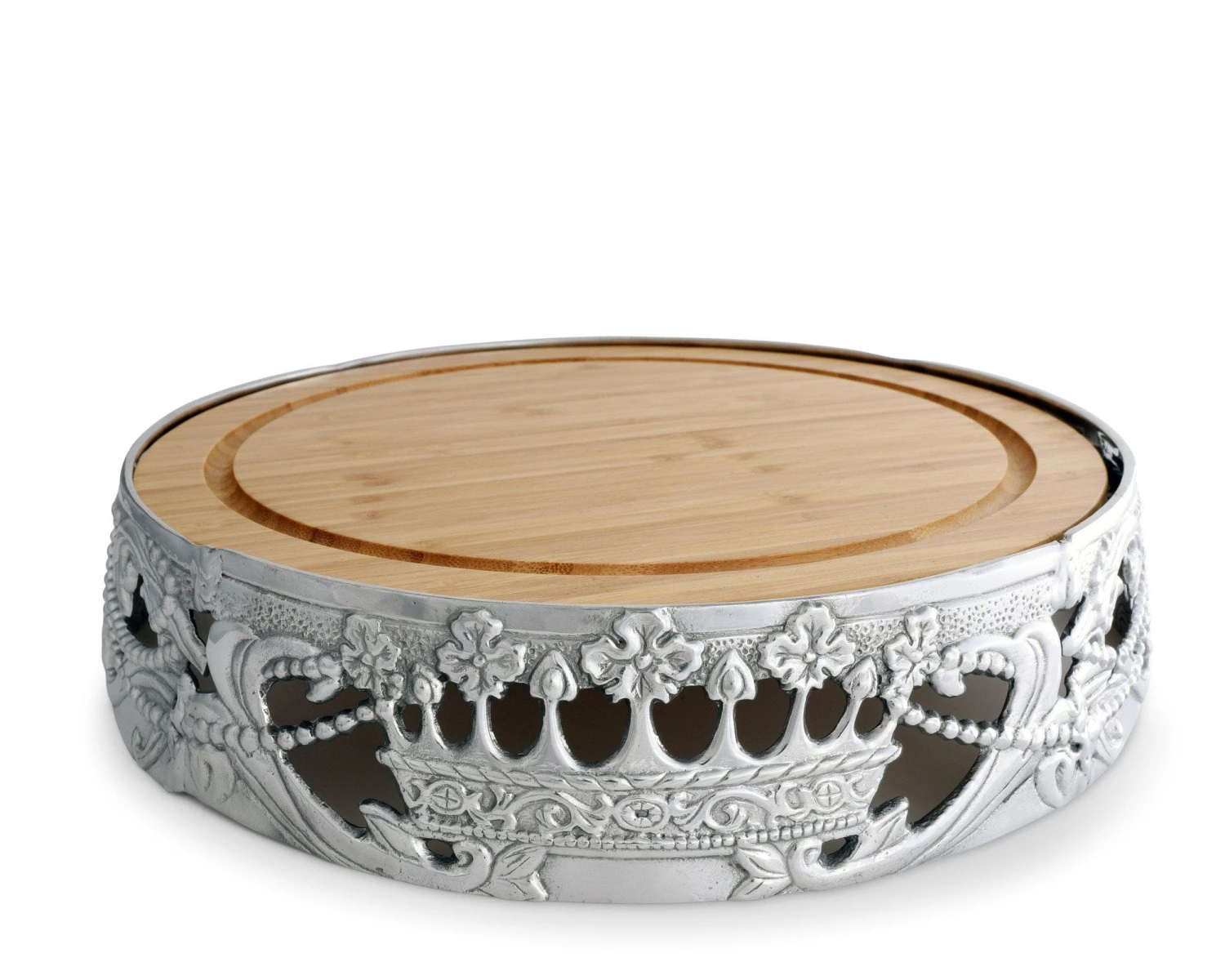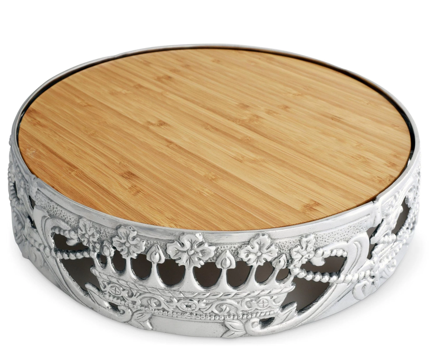 Present a variety of colorful cheeses on the rich, wooden top of this Mardi Gras Pedestal from Arthur Court.