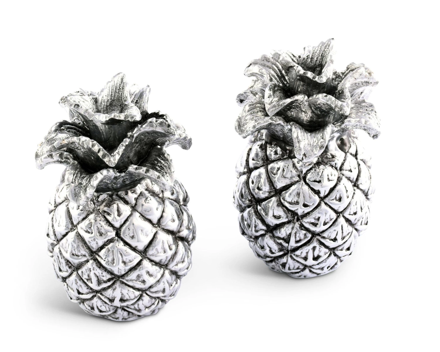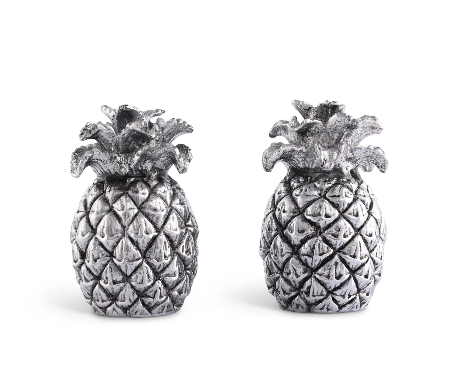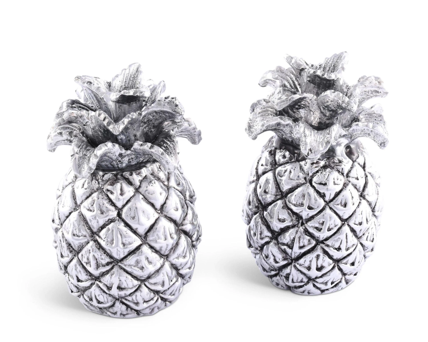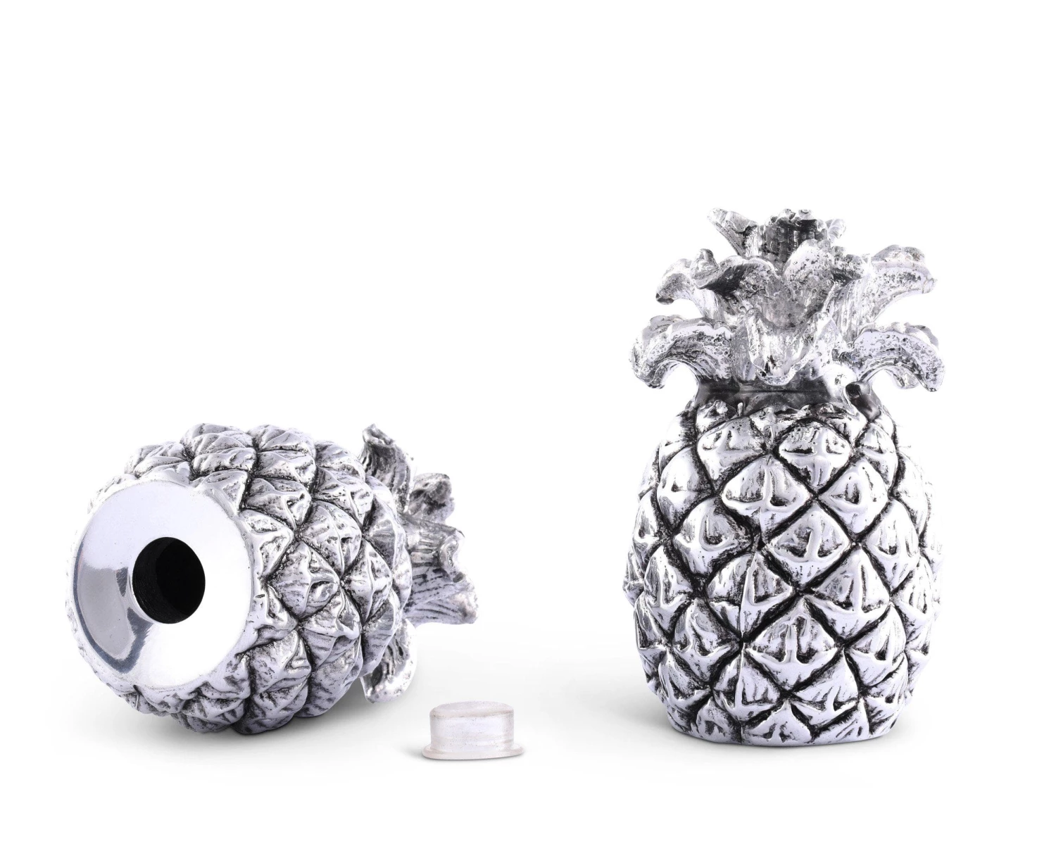 Distinctive metal salt and pepper shakers inspired by the majestic pineapple will be the queen of any table setting. Its shakers holes are within the intricately detailed crown and have a plug at the bottom to easily refill with Salt & Pepper. Our salt and pepper sets are exclusively designed by our creative artists at Arthur Court Designs and crafted in aluminum to last a lifetime.