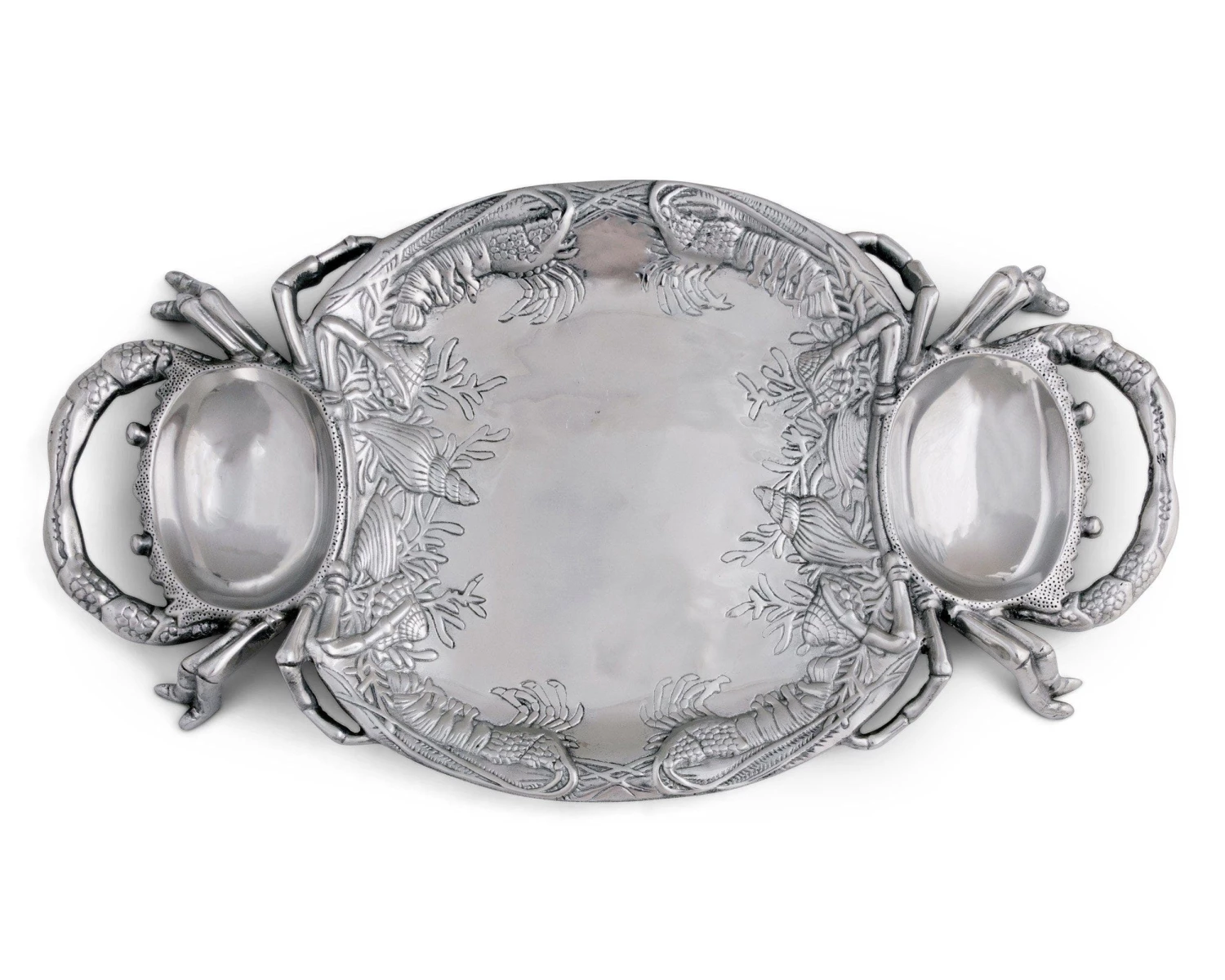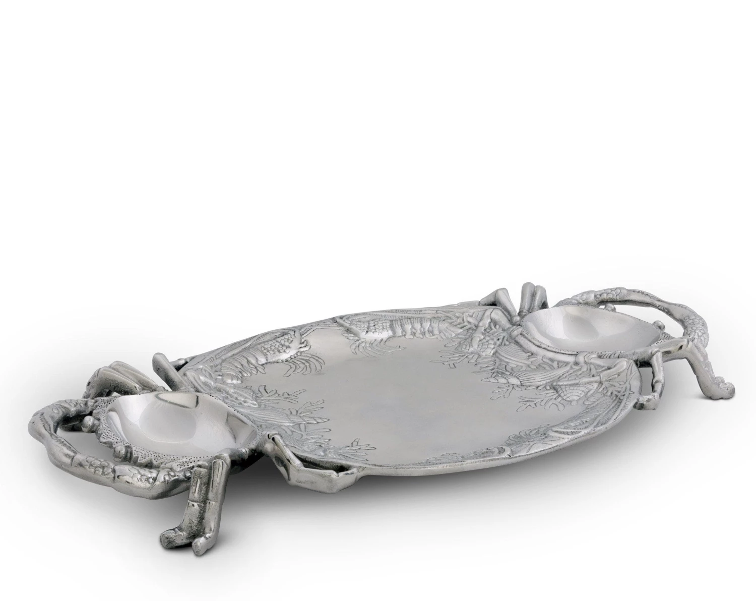 Exquisite crabs latch onto both sides of the handmade, aluminum platter as their claws infuse to form sturdy handholds. Their hollowed shells also put two more empty bowls at your disposal.