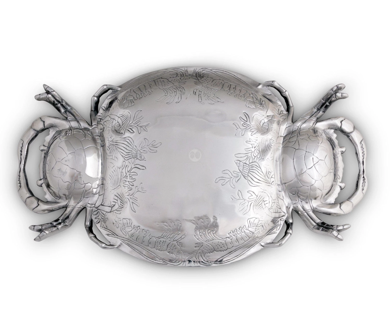 Catch all your favorite sea creatures on this Crab Platter from Arthur Court. Flowing plants surround shrimp, clams and other shellfish on in the interior of this intricate piece.