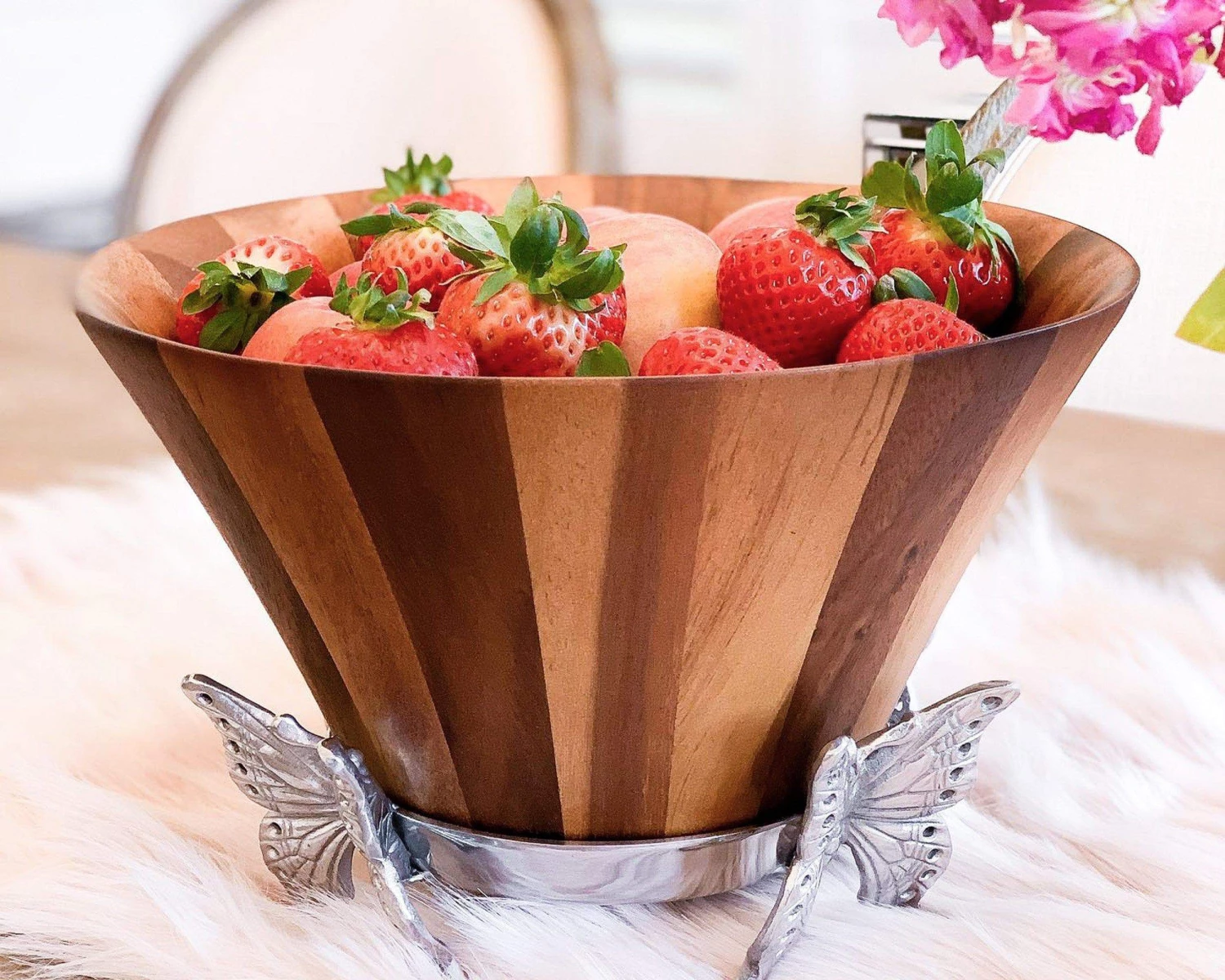 Push your favorite dish into view by putting it inside this Tall Butterfly Wood Salad Bowl from Arthur Court.