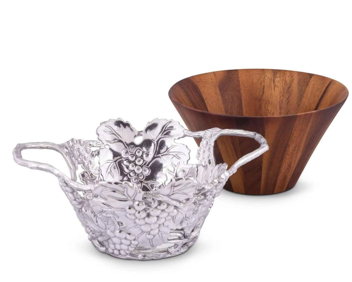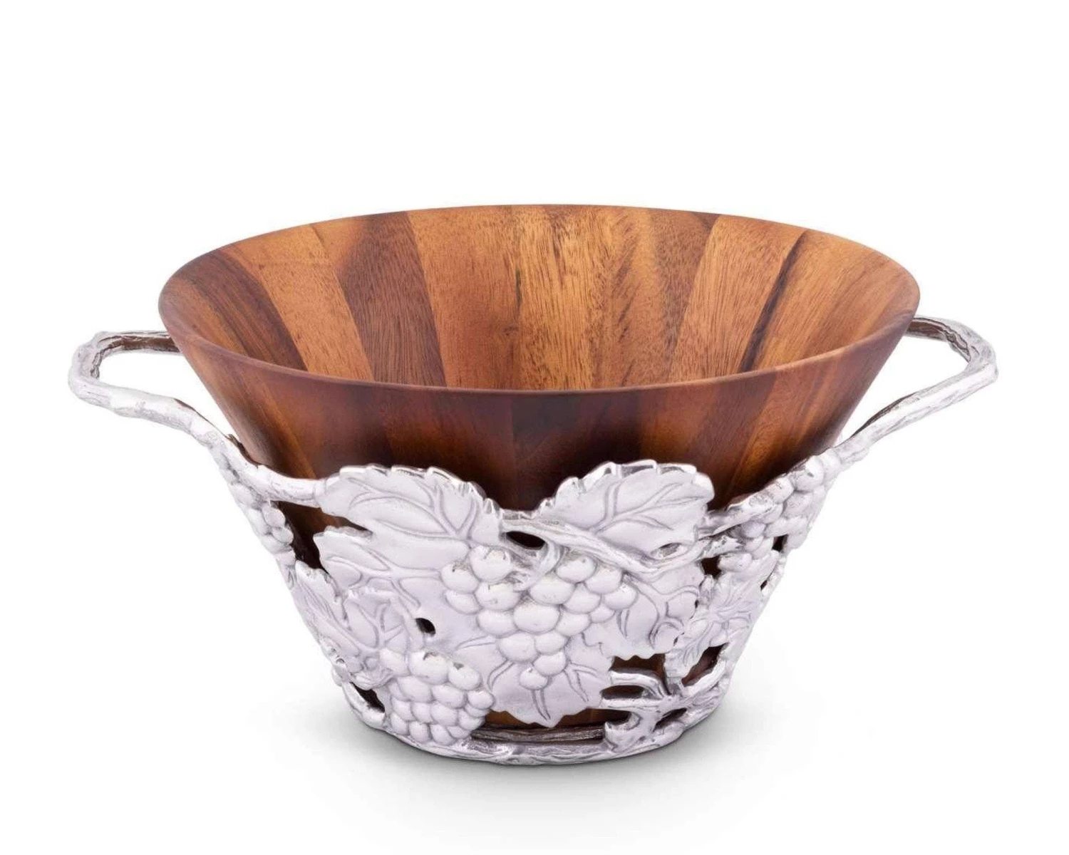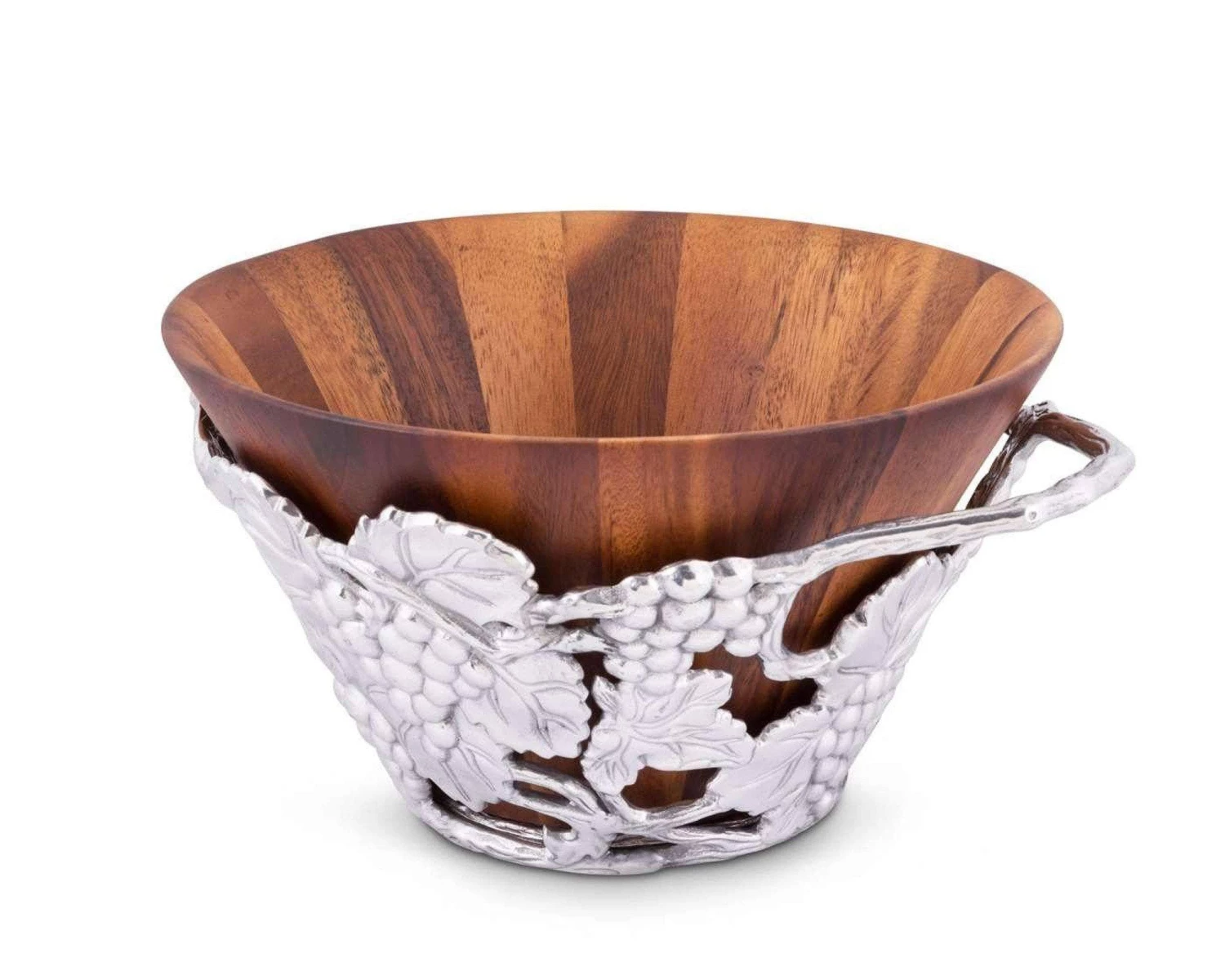 Carry out a generously sized portion of greens with this Tall Grape Wood Salad Bowl from Arthur Court. Robust bundles of grapes display among thick, veiny leaves on the base, while vines connect the motifs before extending into handles.
