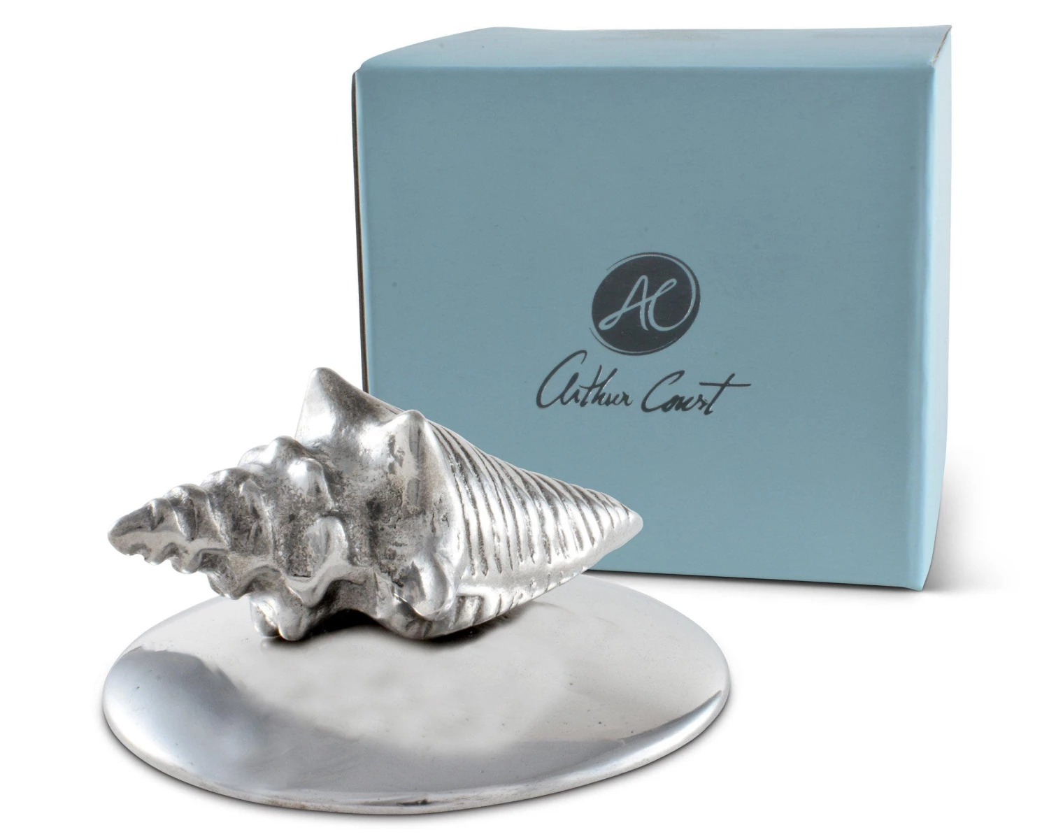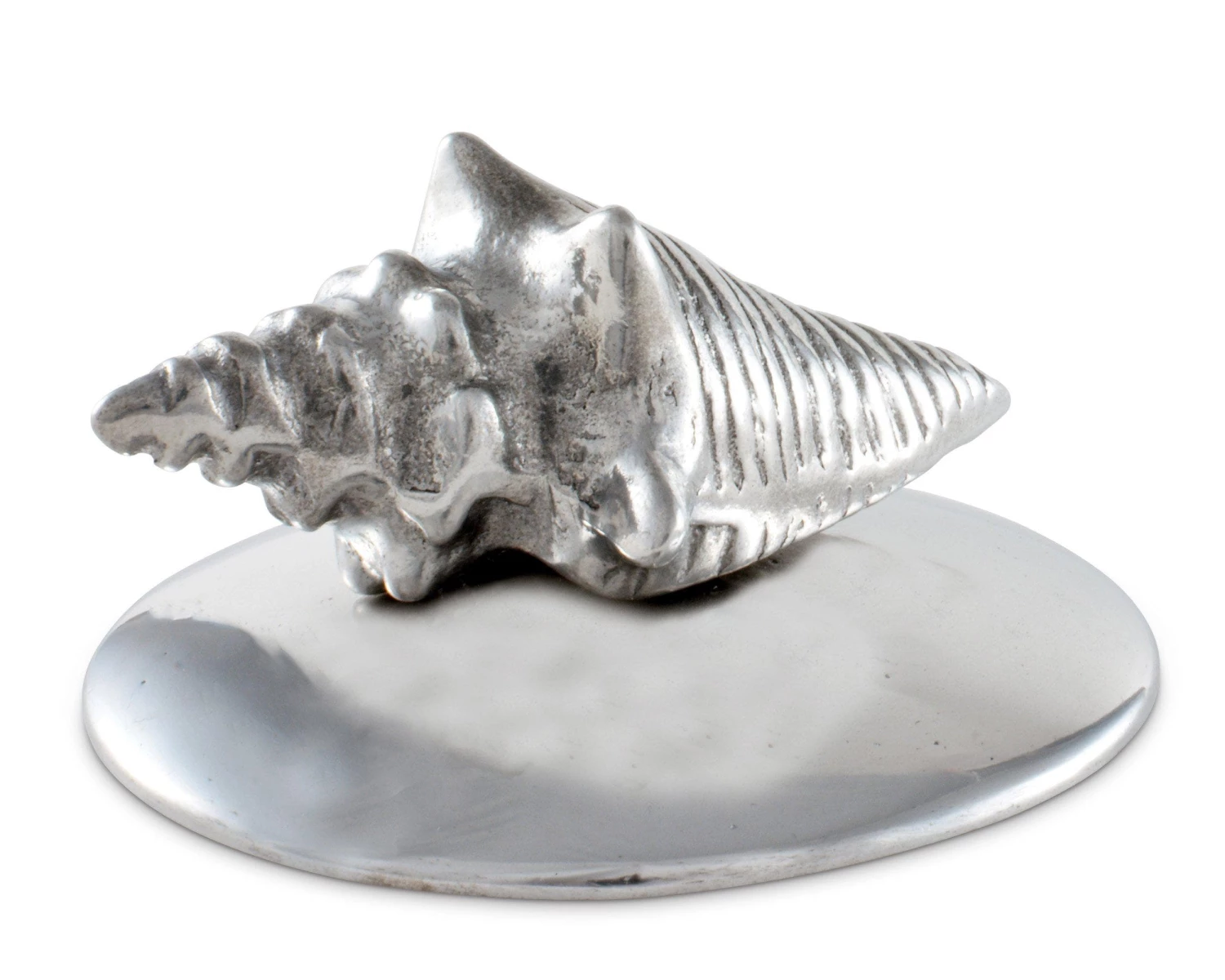 A must-have for al fresco dining, this small, weighted aluminum, seashell sculpture is a champion at keeping napkins in their place until needed. Perfect for anything that needs a little extra weight on an outdoor table. Best the ocean breeze with a little piece of seashore art.
