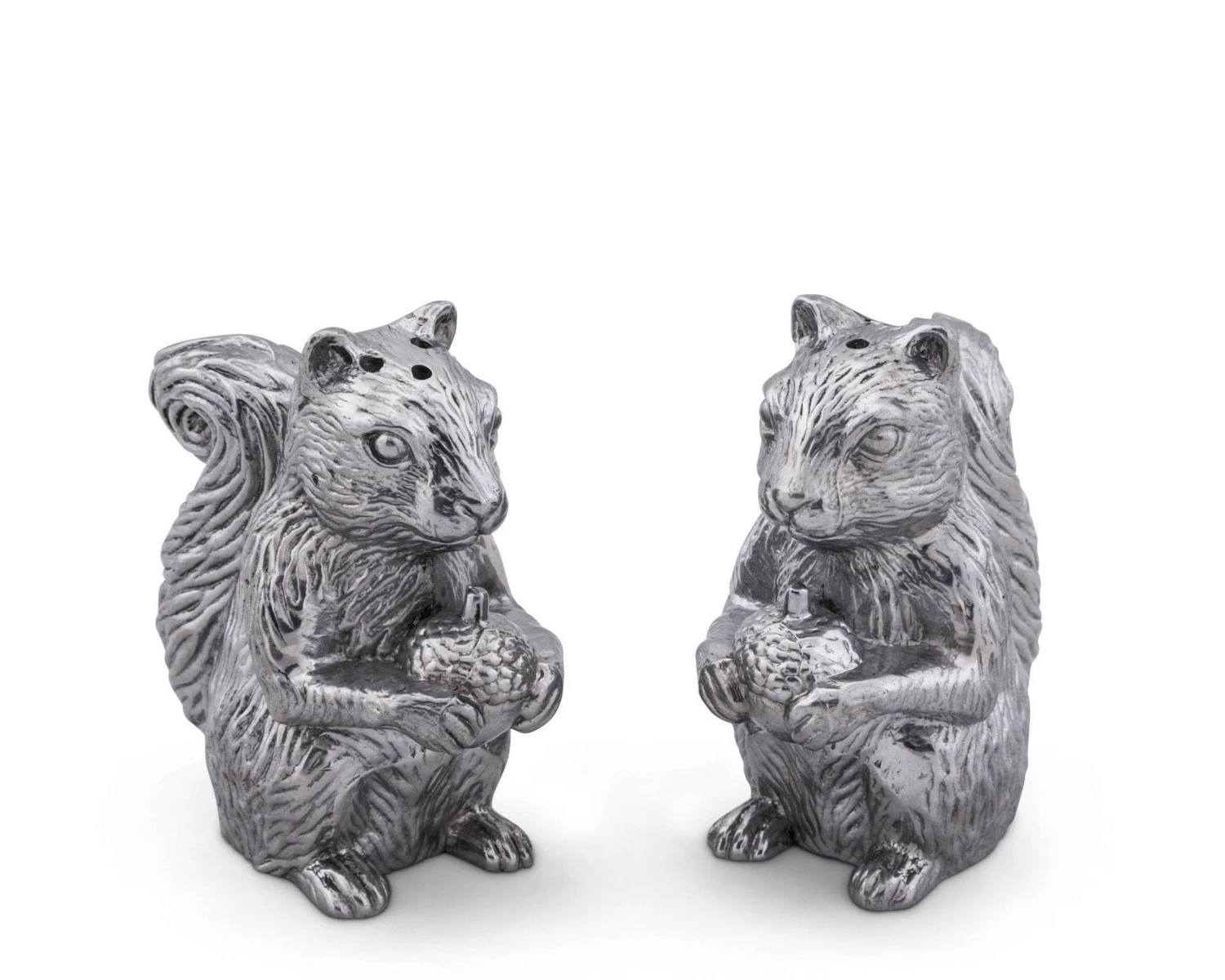 Hand-crafted in signature Arthur Court aluminum alloy, the lively squirrel duo is lightly antiqued so every detail of their fur and the acorns they hold stands out. Guests will chat about the delightful cuties and ask where you found them. It is up to you if you want to share your secret!