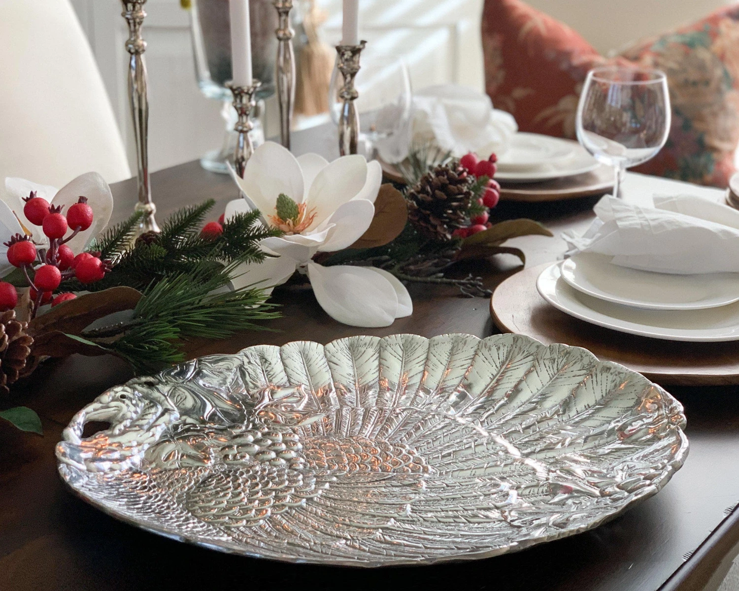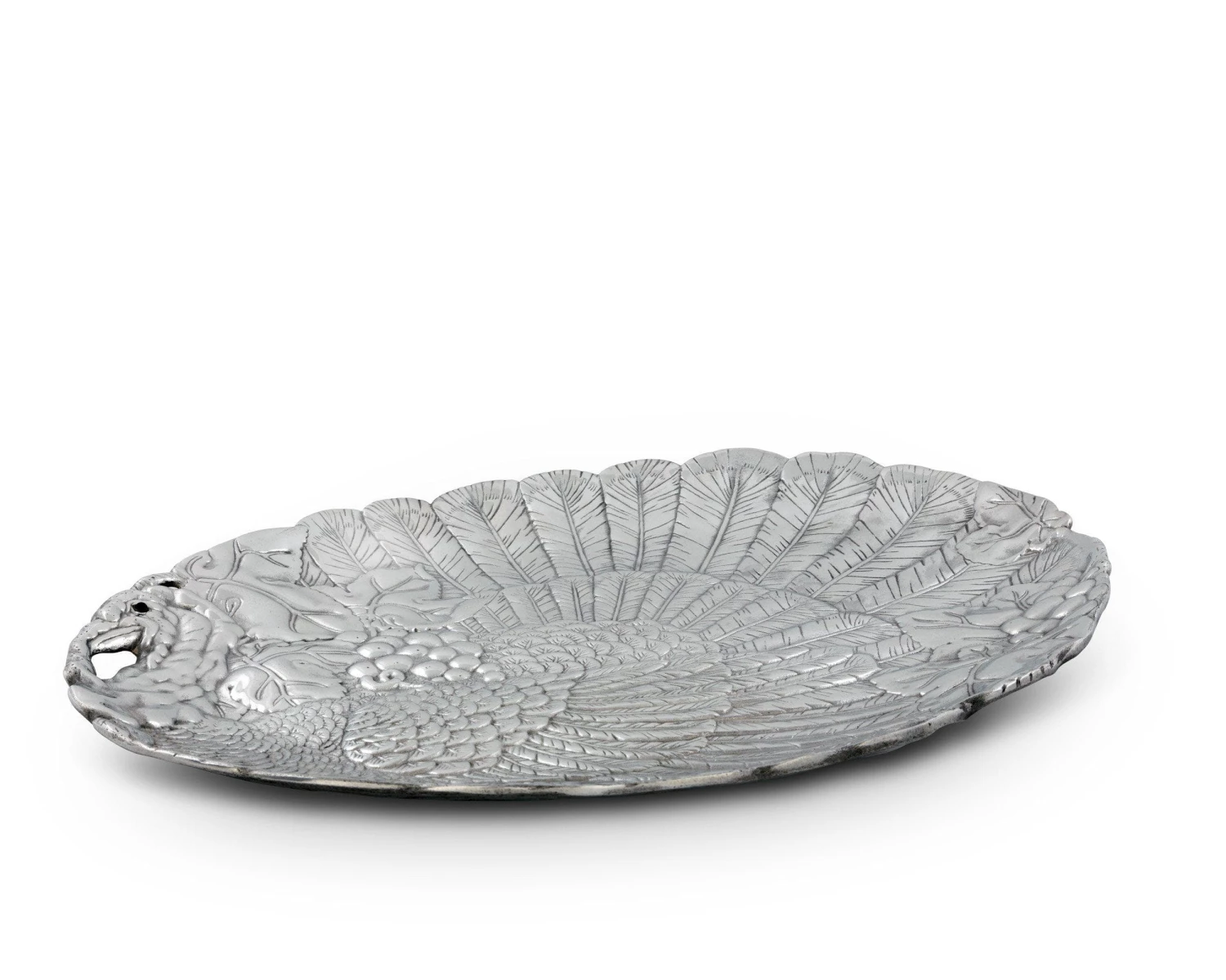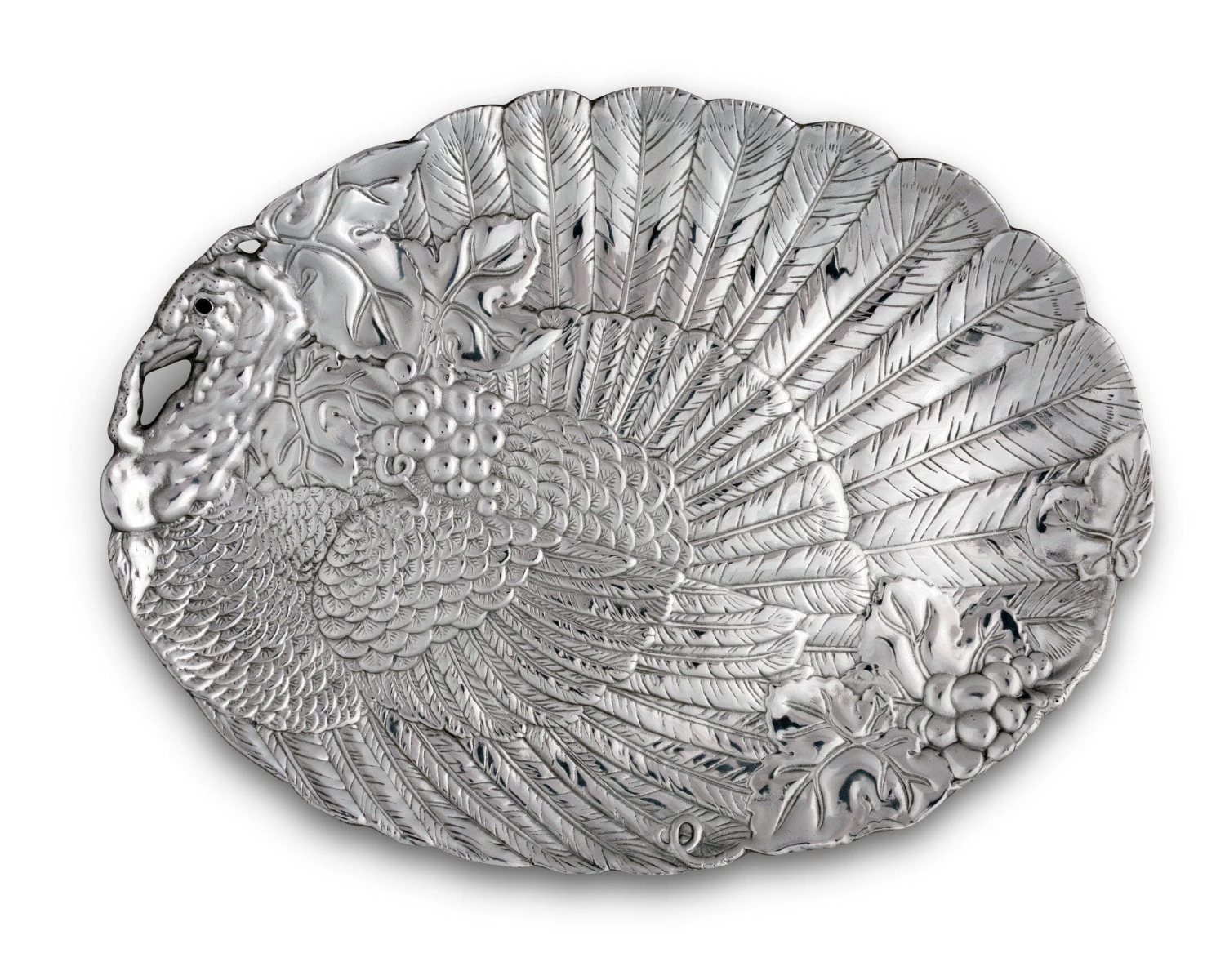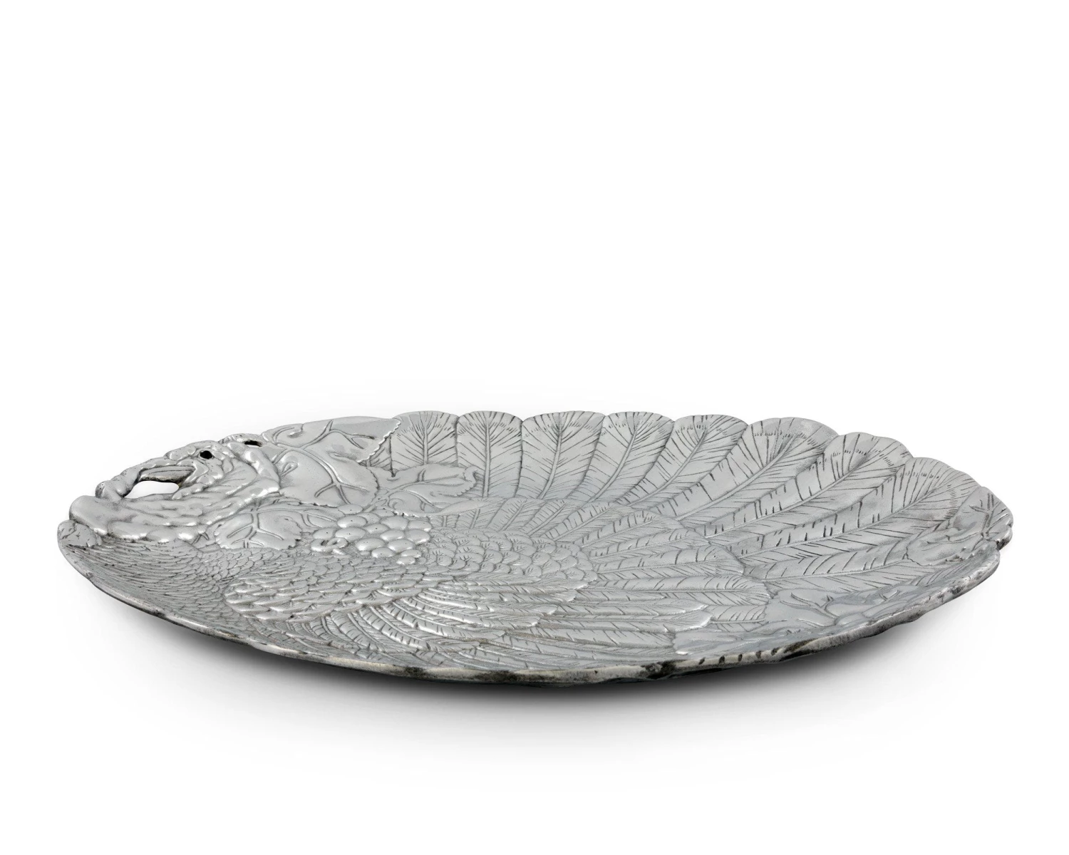 Flatten out your meat display with this Turkey Oval Platter from Arthur Court. A turkey balloons into a circular dish as its small head pushes up against one of the side edges.